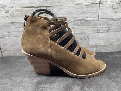 Eileen Fisher Heel Sandals Women 8 James Shoes Brown Leather Straps Cage Comfort