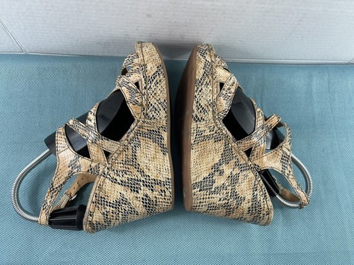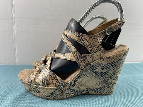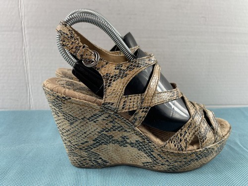 Born Børn Boc Womens Shoes Brown 8 M Leather Slingback Snake Print Wedge Sandals