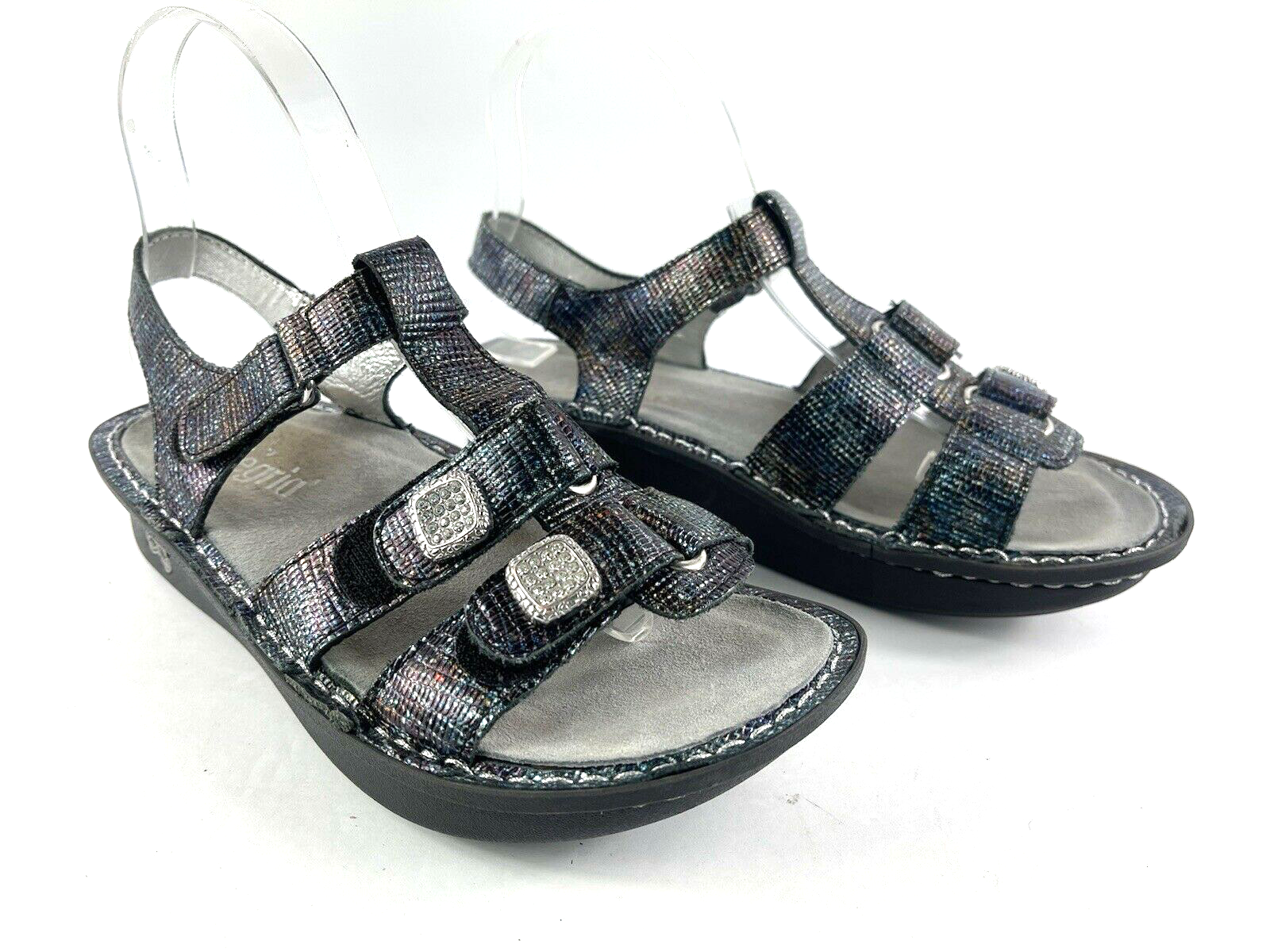 Alegria Sandals Womens 37 / 6.5 M Kloe Wedge Shoes Multicolor Patent Slingback