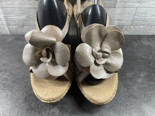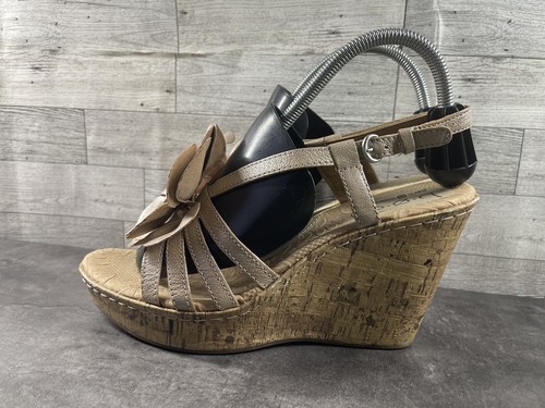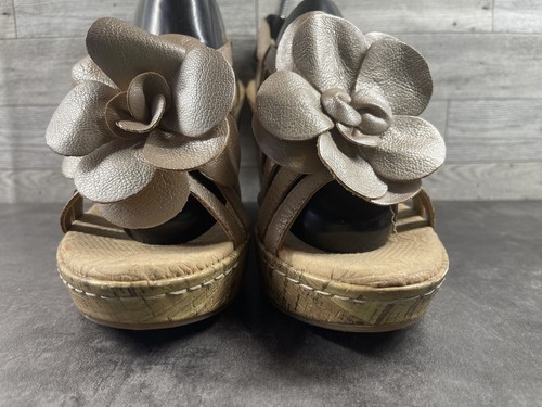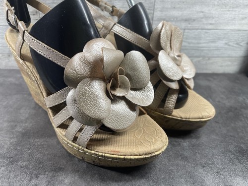 Børn Born Sandals Women 10 M Shoes Brown Leather Flower Comfort Wedge Slingback
