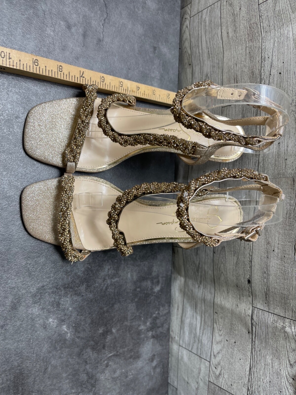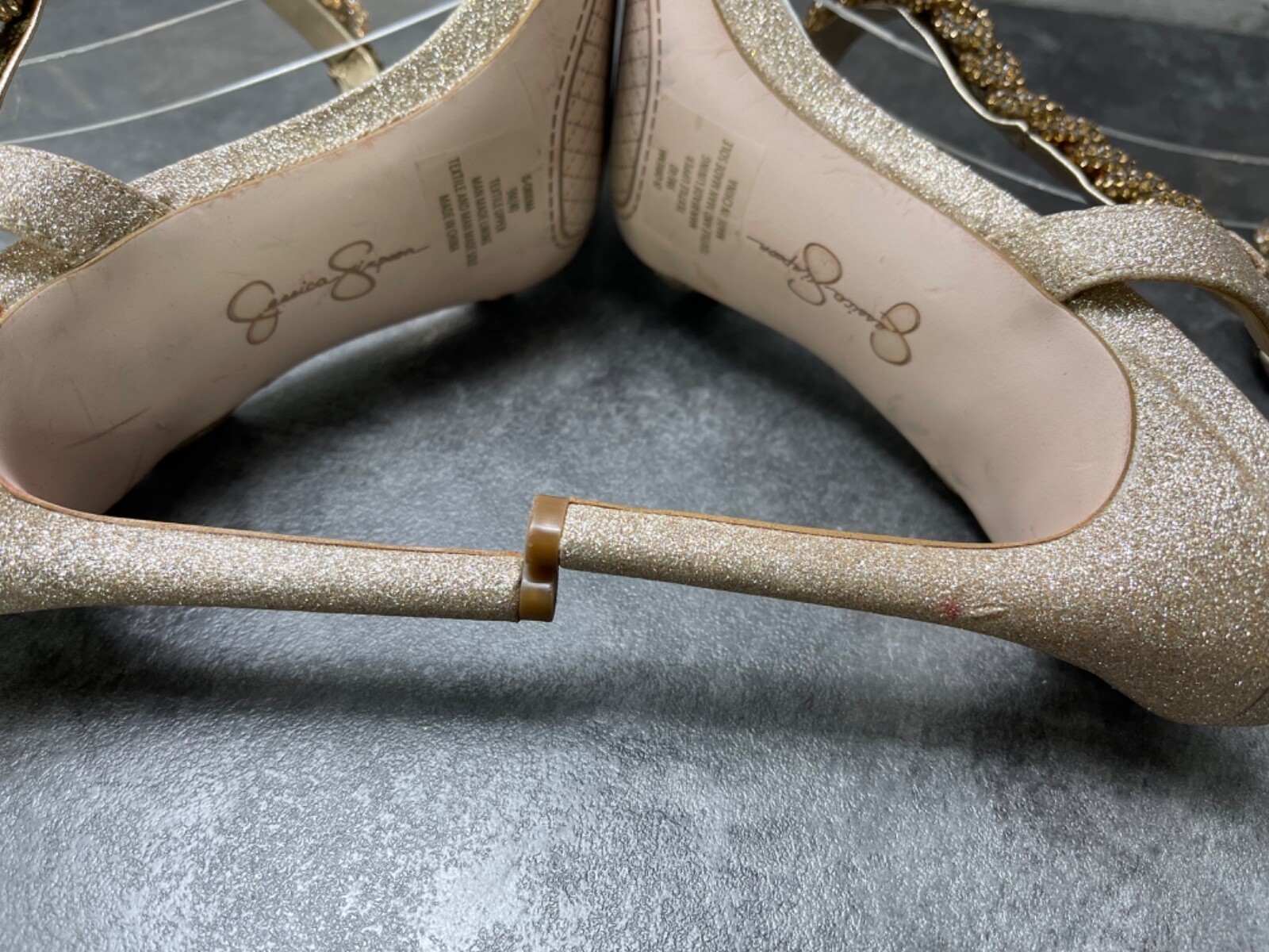 Jessica Simpson Oriema Women Shoes Gold 9M Leather Straps Slingback Heel Sandals