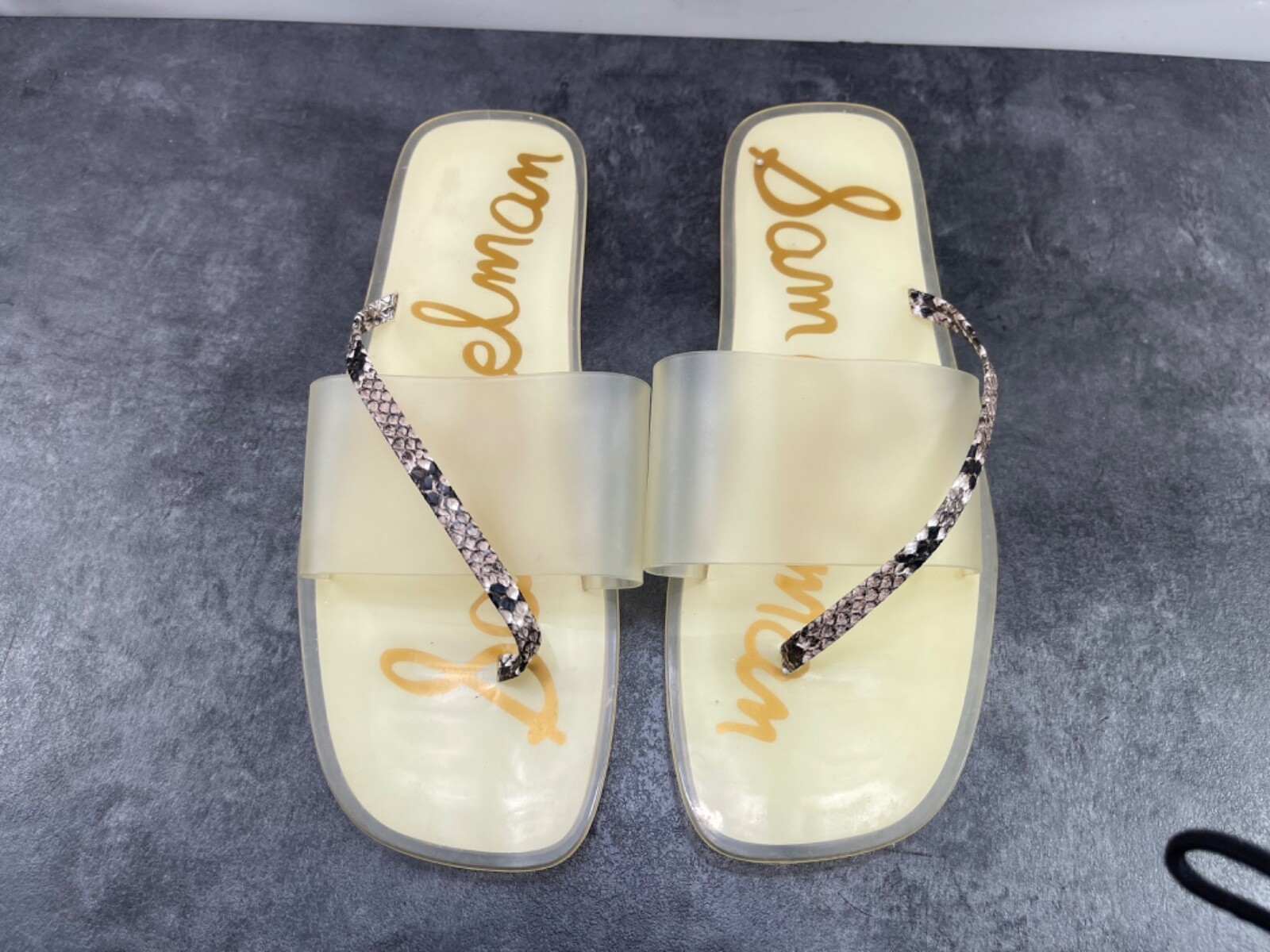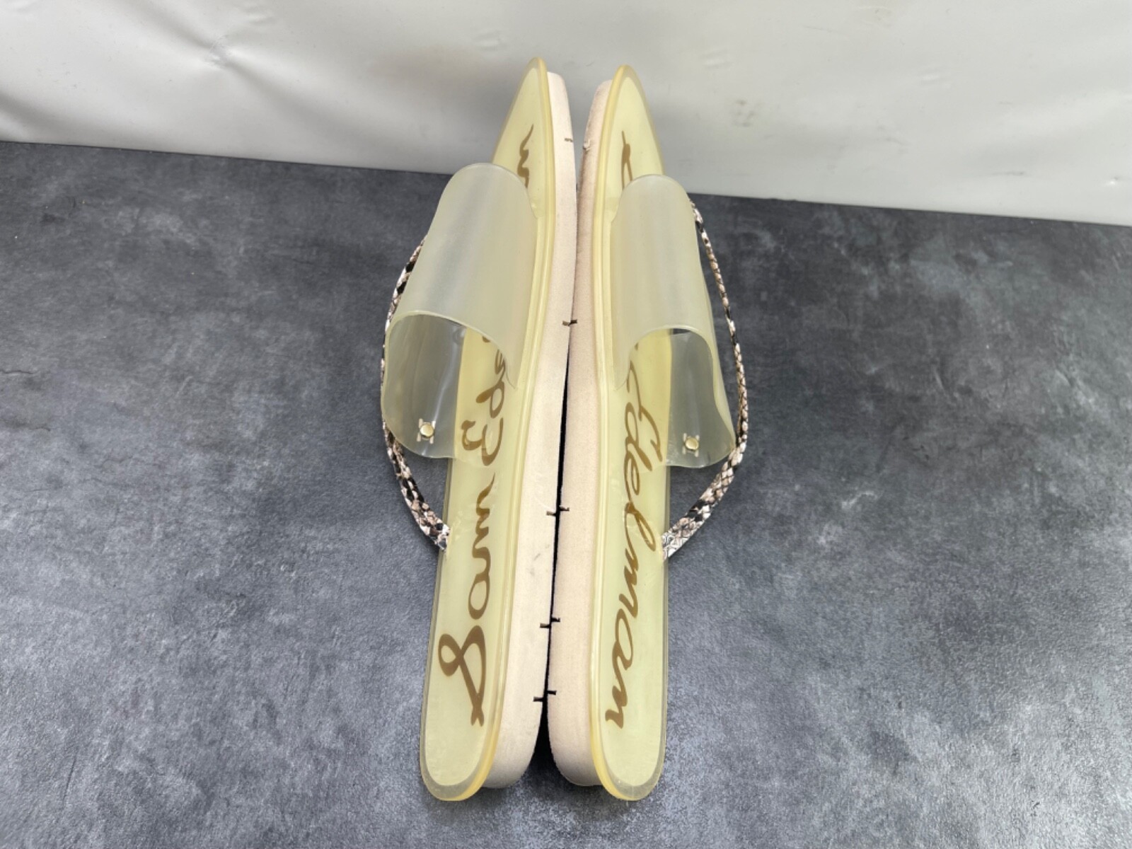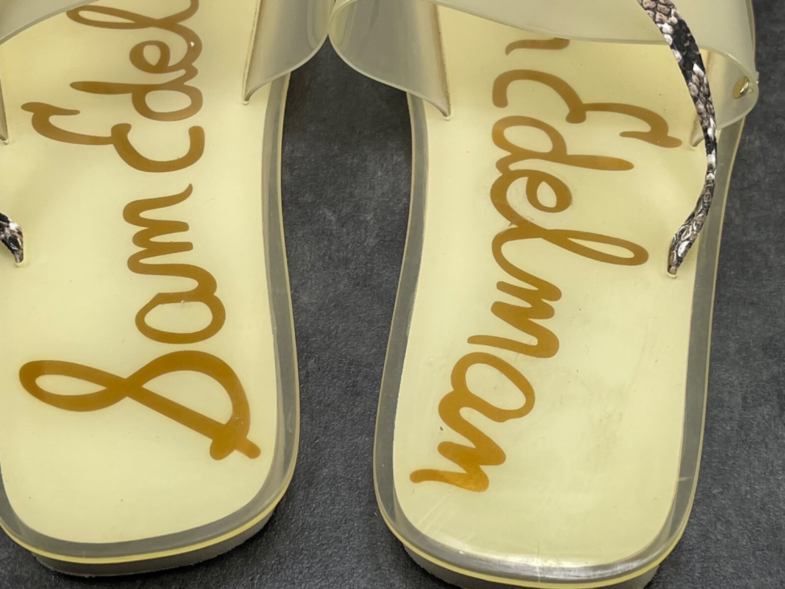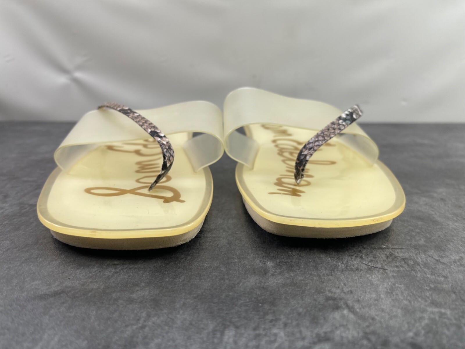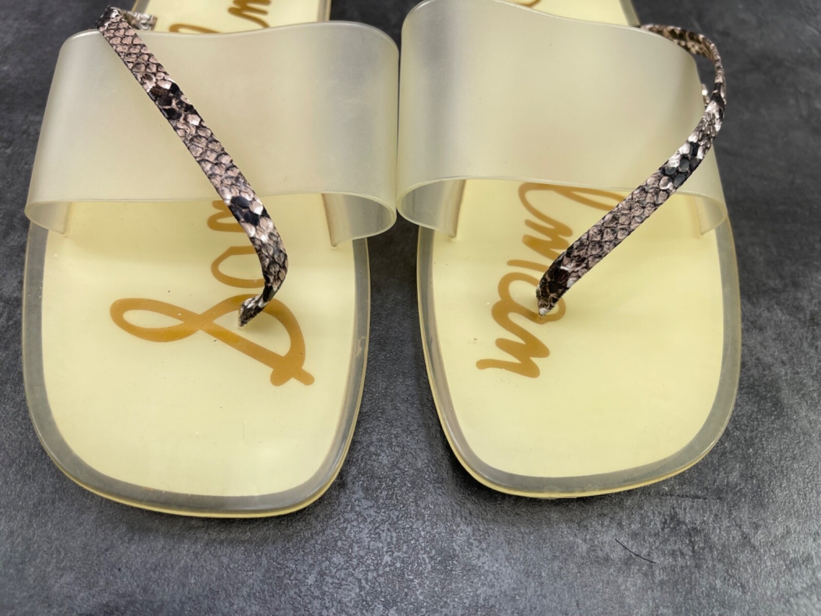 Sam Edelman Luciana Women Shoes Tan 9M Leather Snake Print Thong Slides Sandals