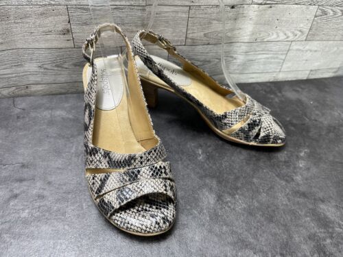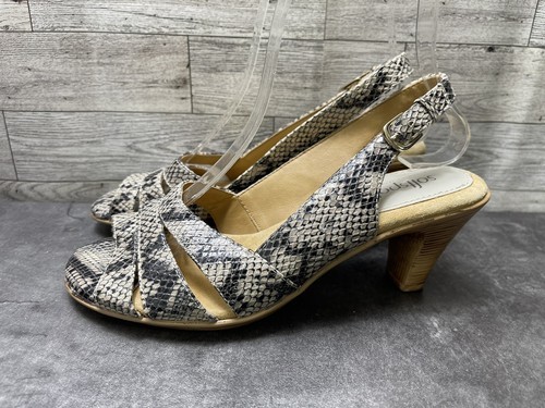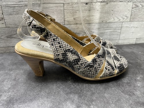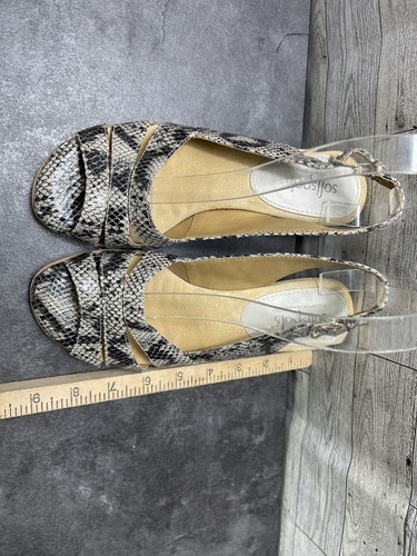 Softspots Women Shoes Black Beige 6 M Patent Snake Print Comfort Heel Sandals