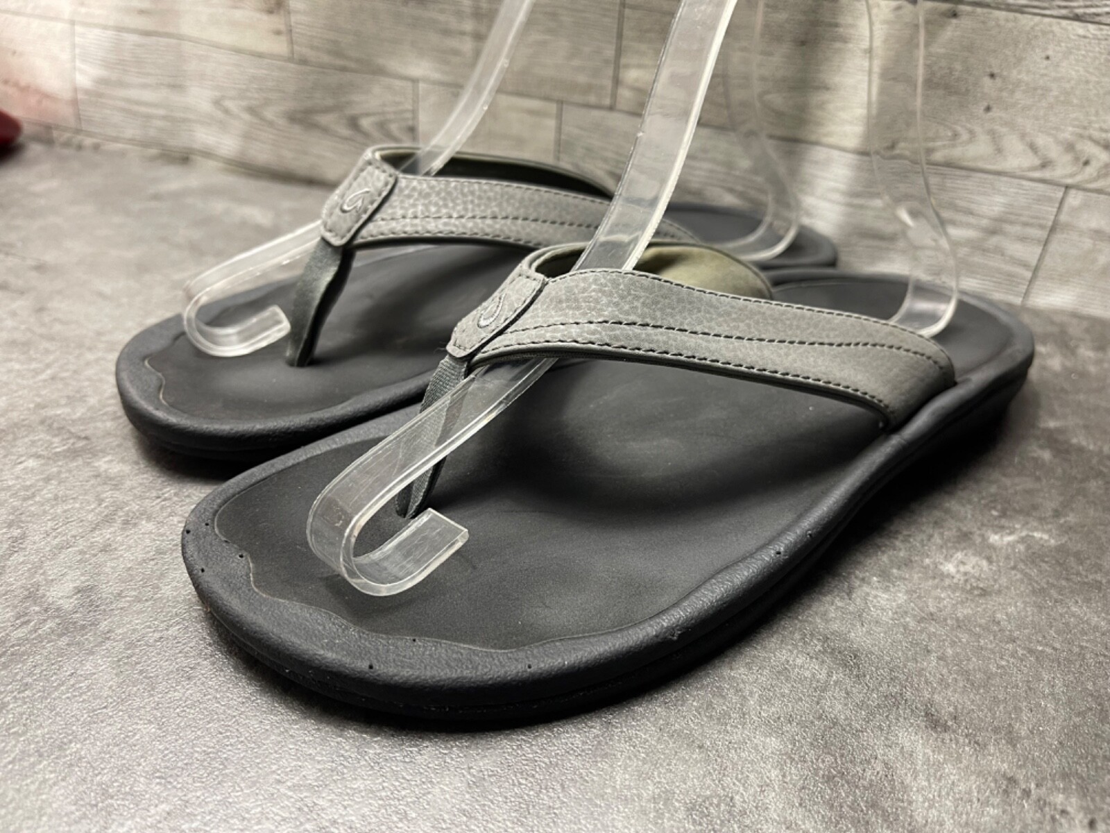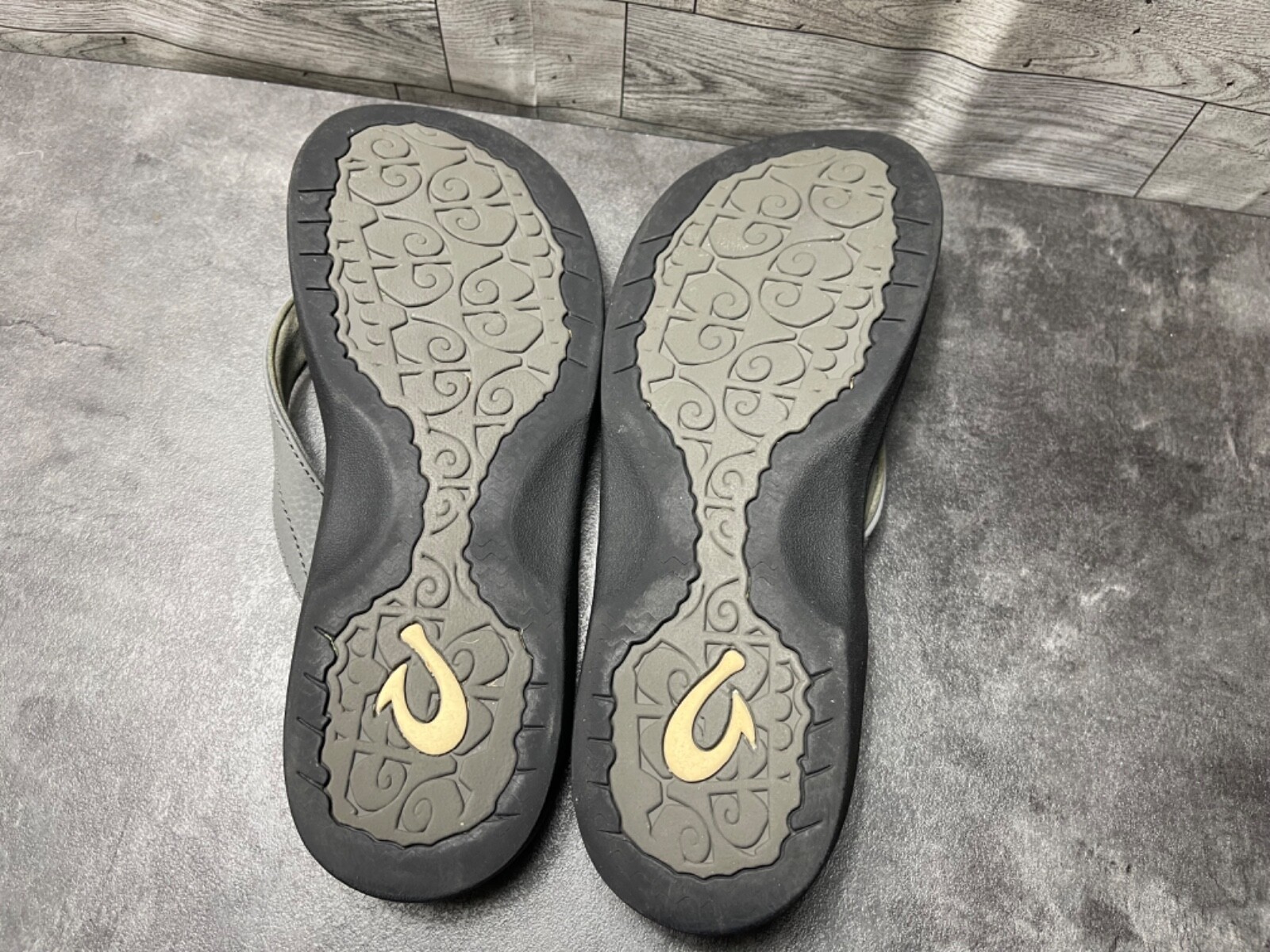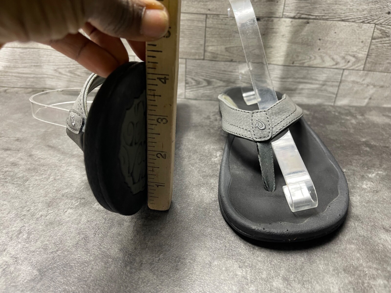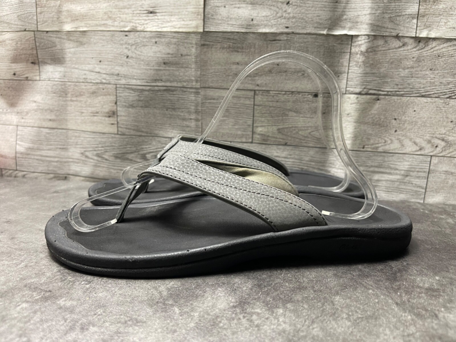 Olukai Ohana Women Shoes Gray 8 M Leather slip On toe Thong Casual Beach Sandals
