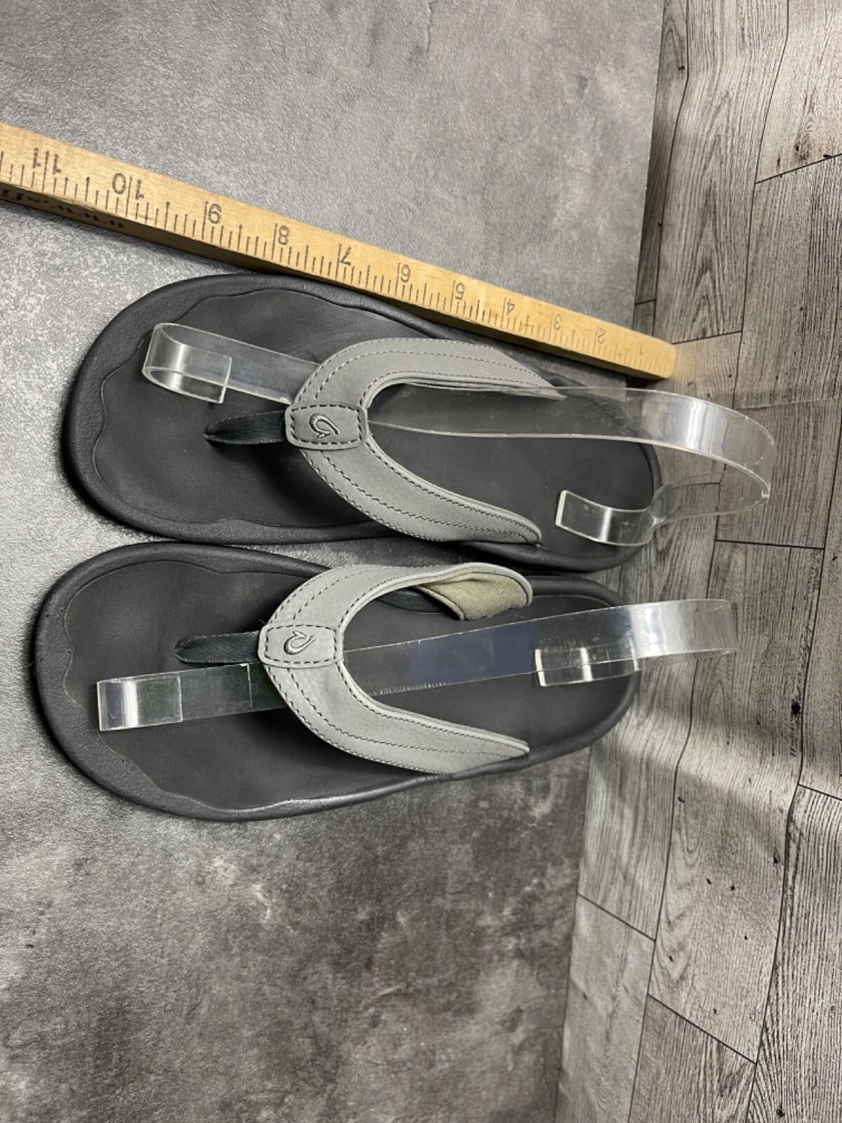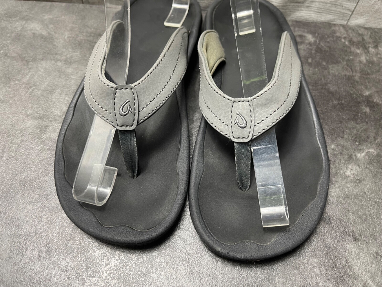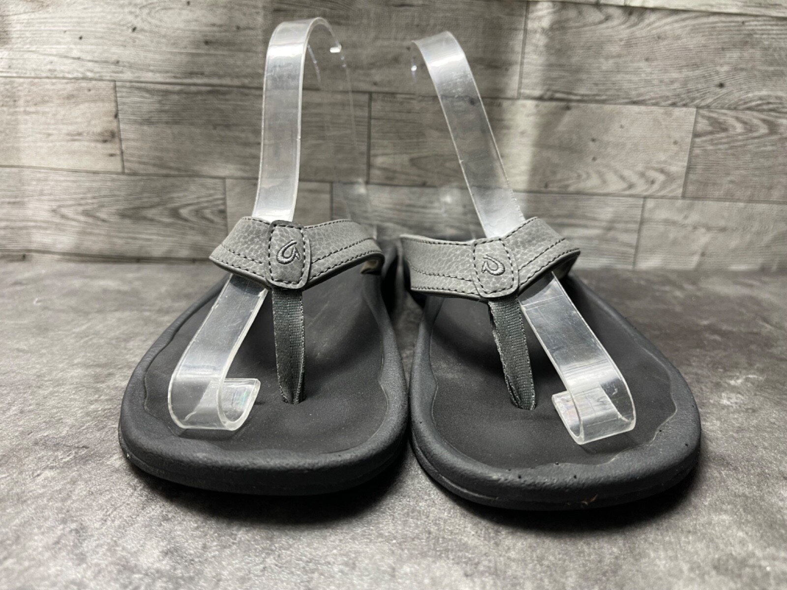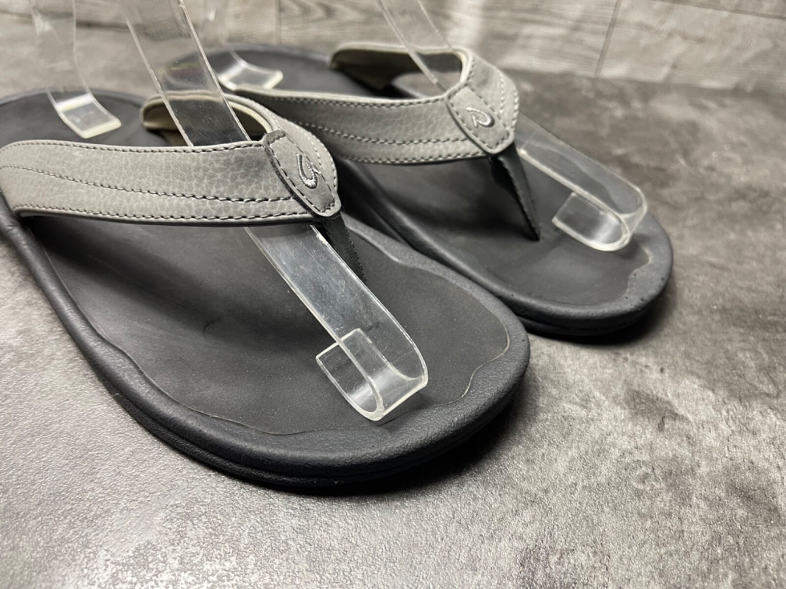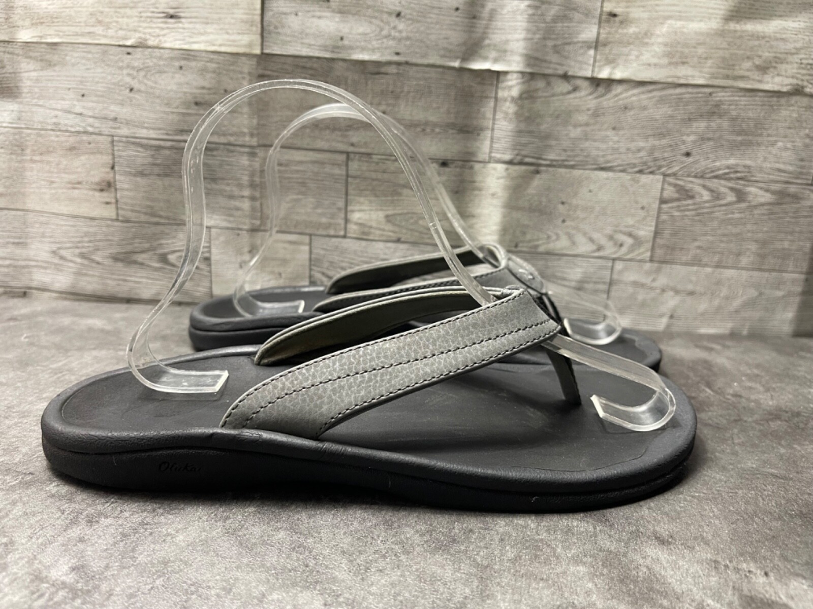 Olukai Ohana Women Shoes Gray 8 M Leather slip On toe Thong Casual Beach Sandals