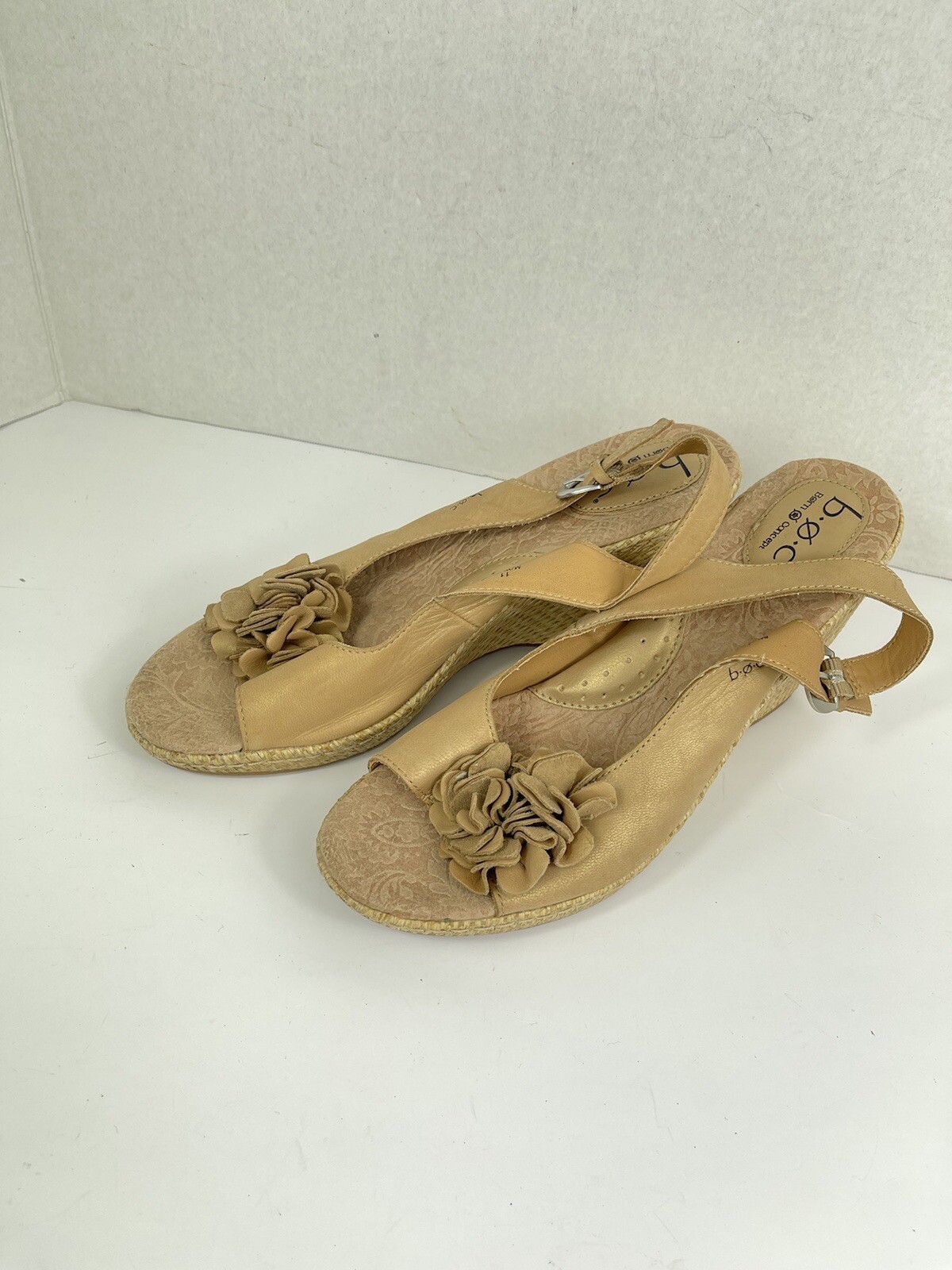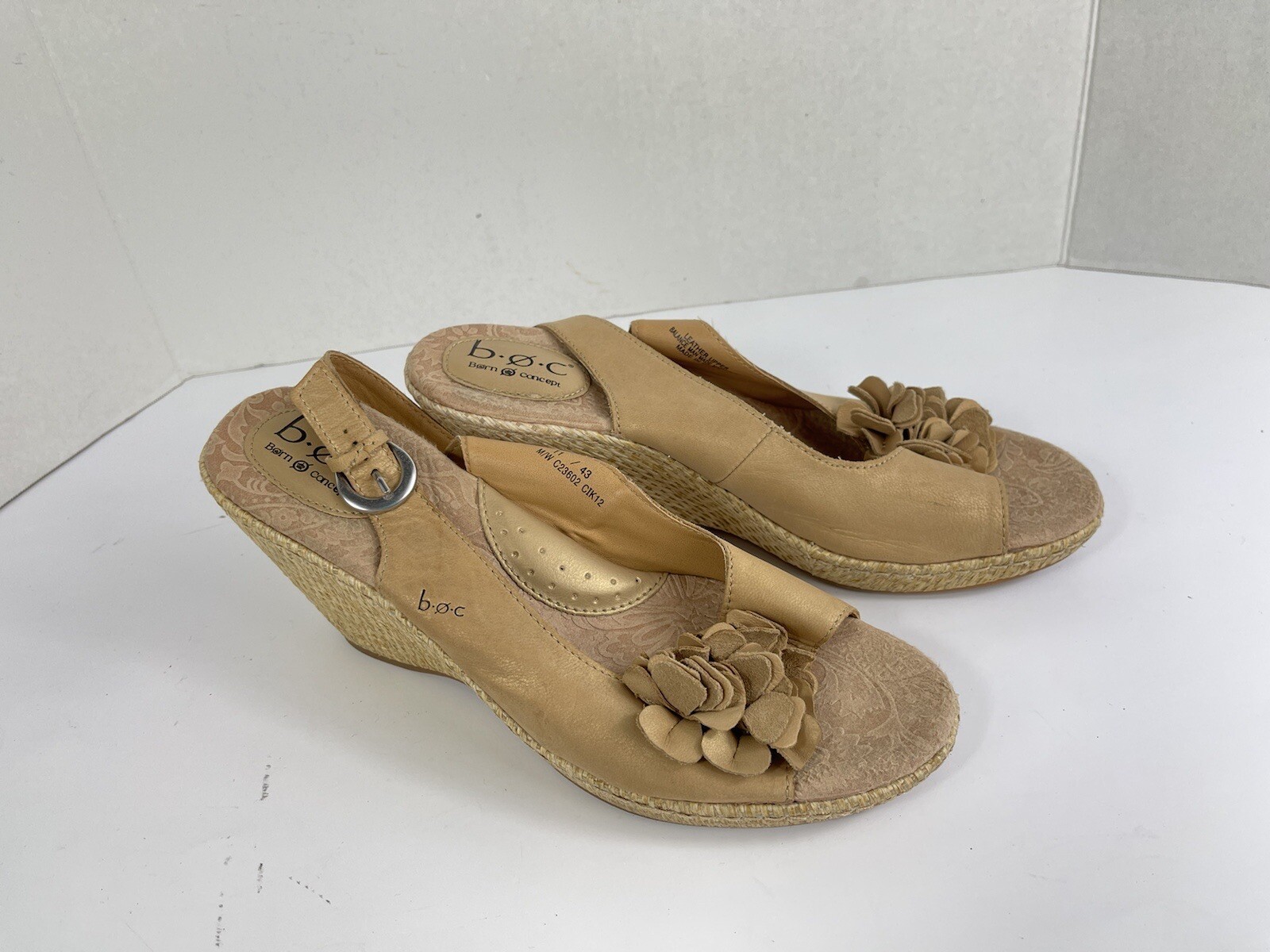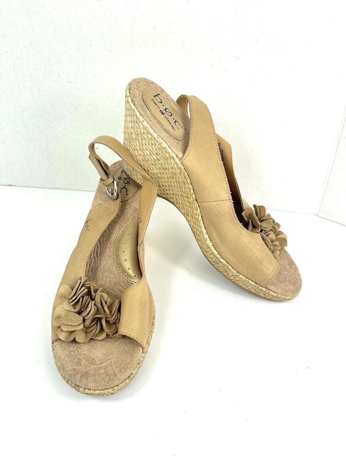 Boc Born Concept Womens Shoes Tan 11M Leather Wedge Espadrille Flower Sandals