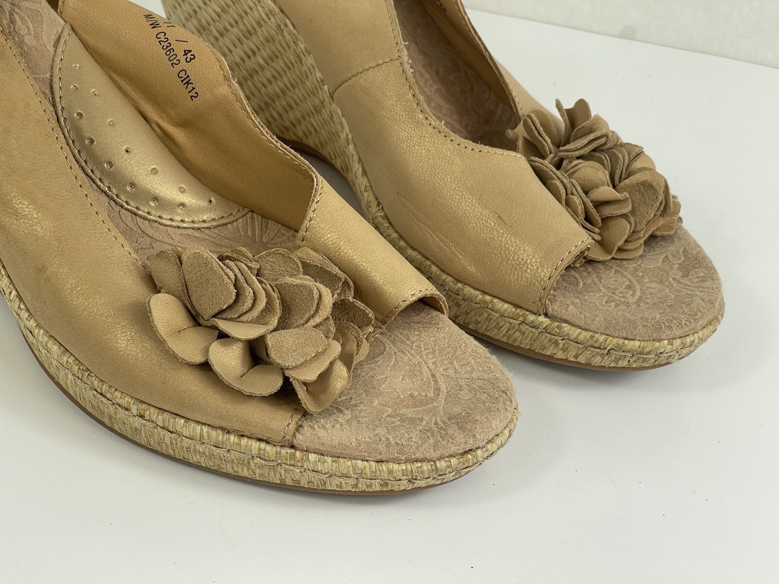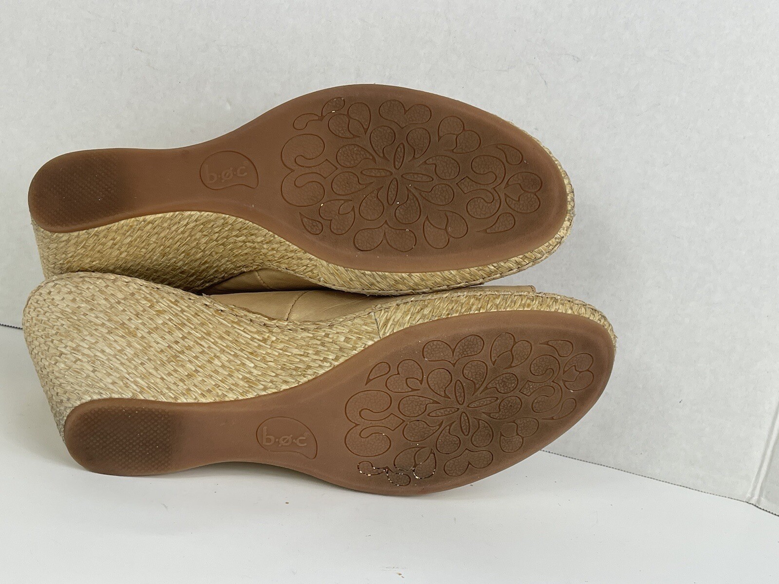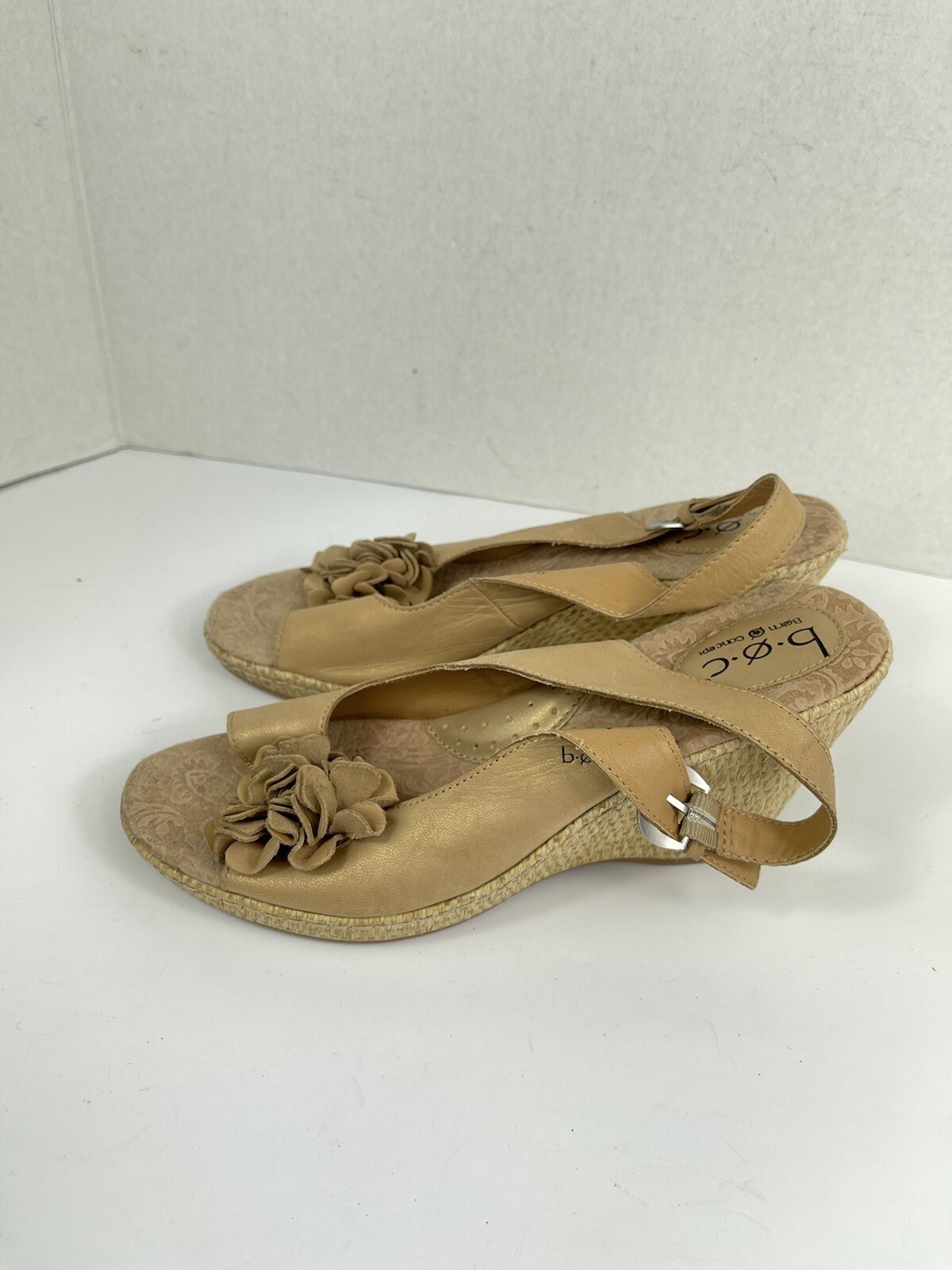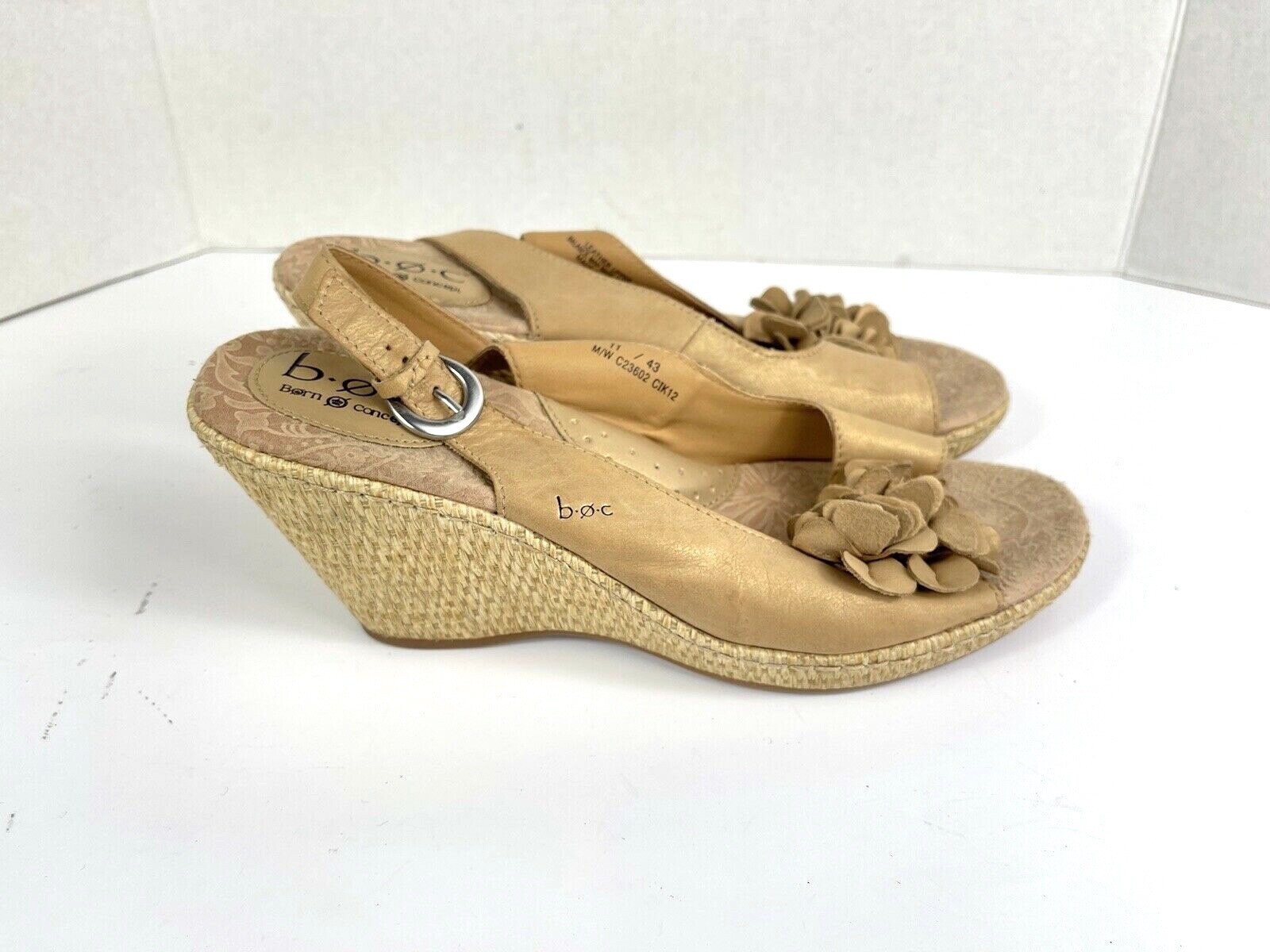Boc Born Concept Womens Shoes Tan 11M Leather Wedge Espadrille Flower Sandals