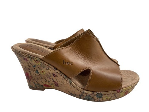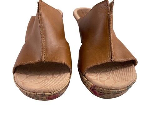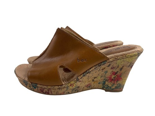 Born Børn Boc Women Shoes Brown 9M Leather Dianna Floral Cork Heel Wedge Sandals