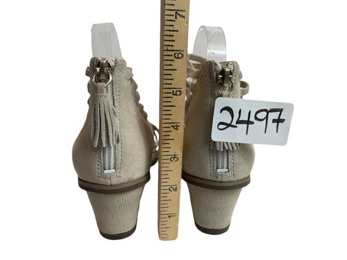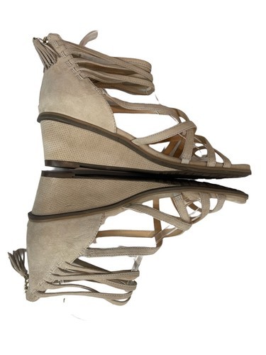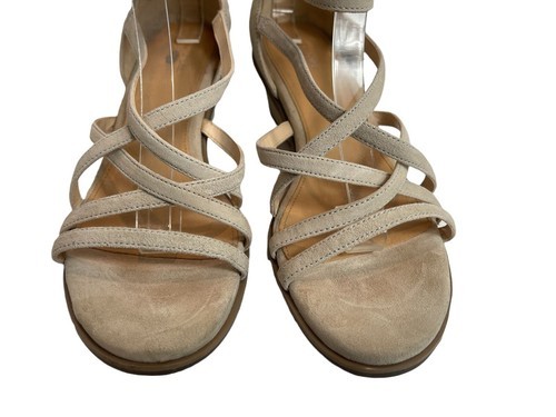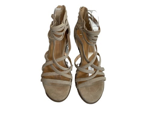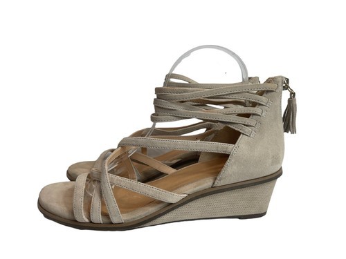 Dr Scholl's Womens Shoes Beige 7.5 M Leather Granted Strappy Zip Wedge Sandals