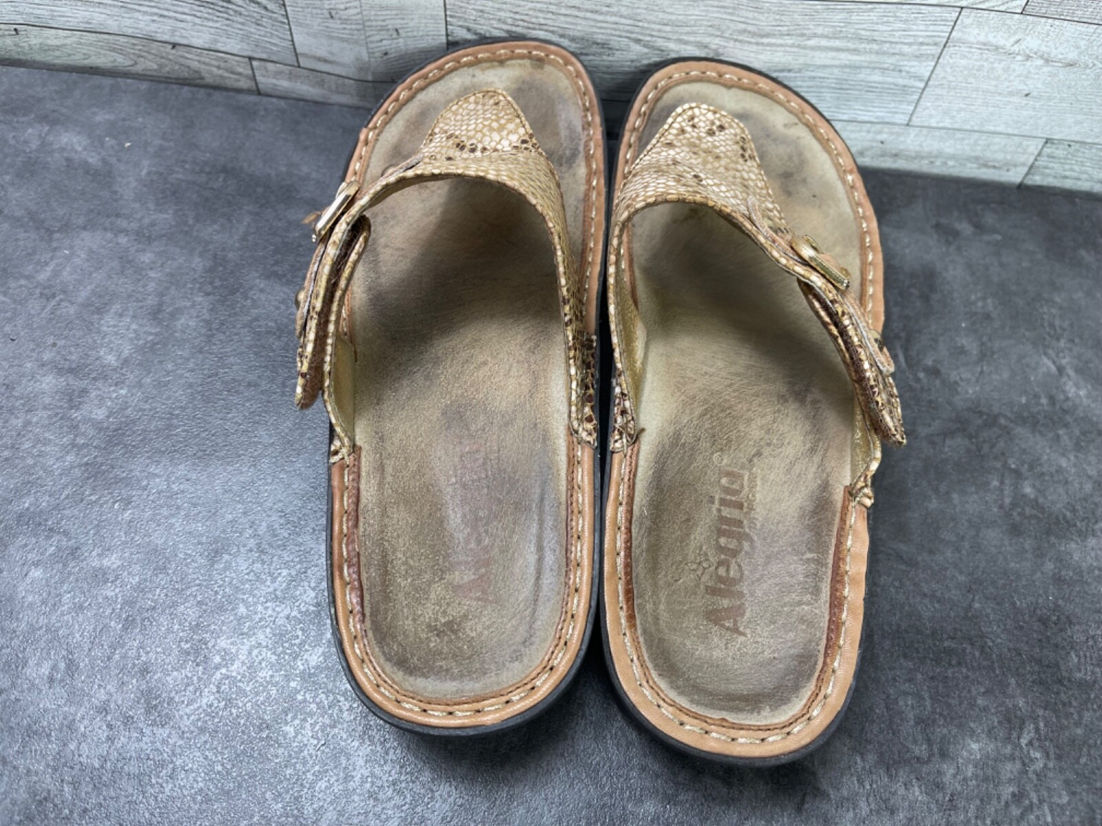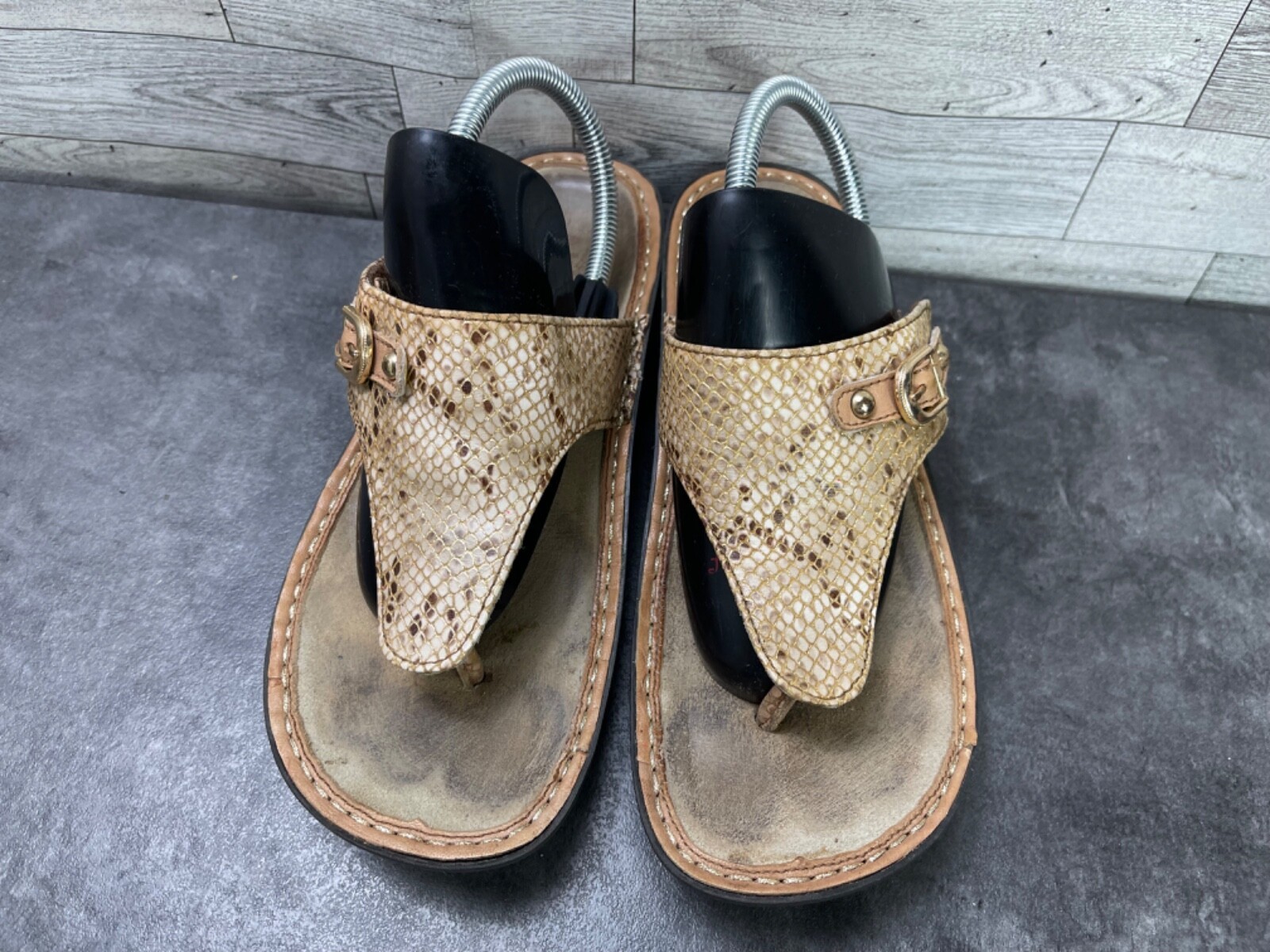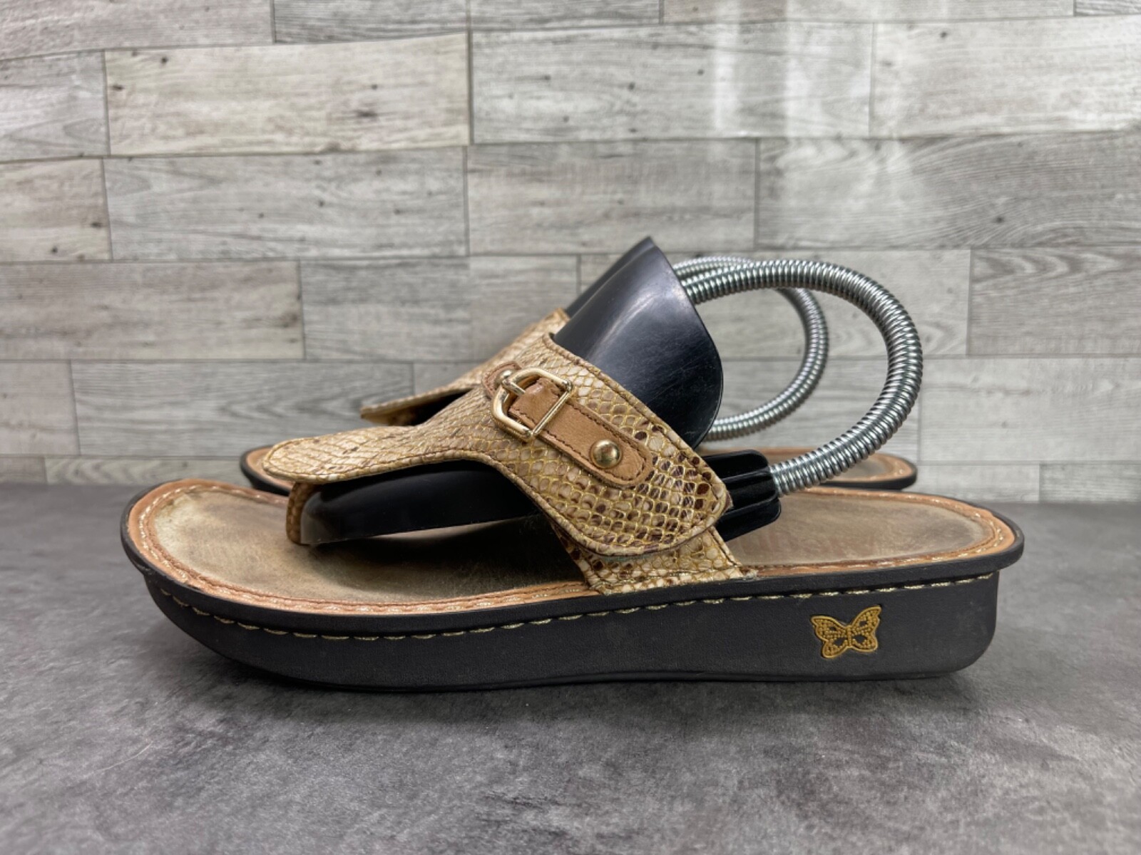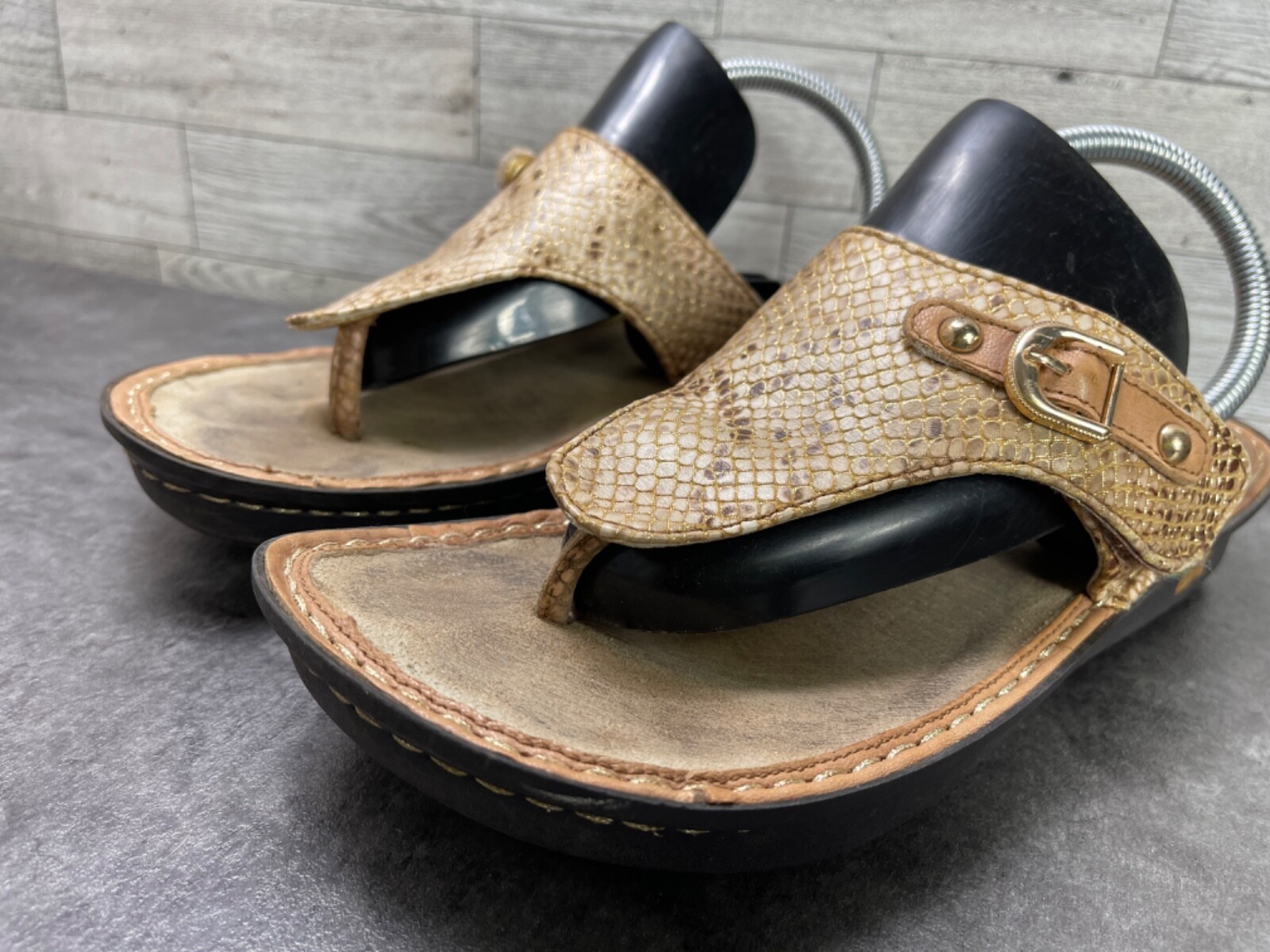 Alegria Vanessa Posh Women Shoes Gold 40 / 9.5 Leather Thong Croc Print Sandals