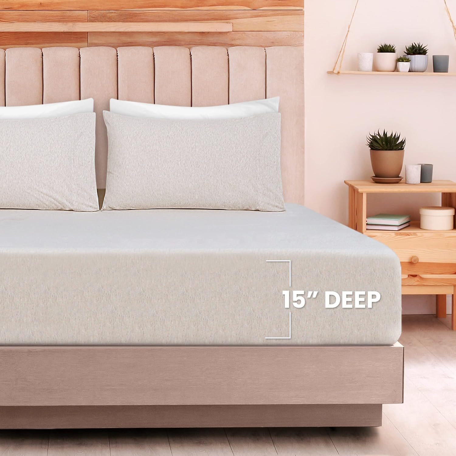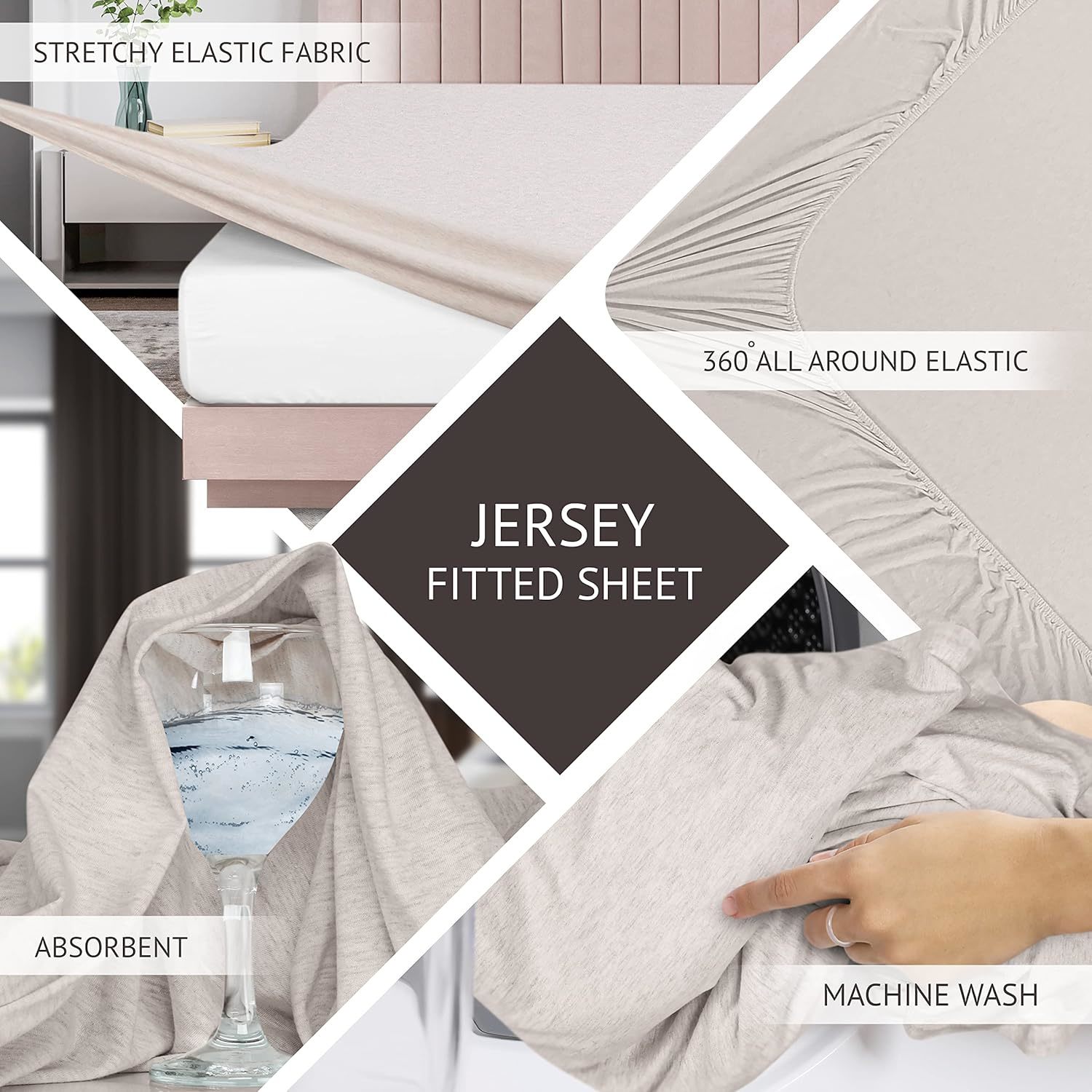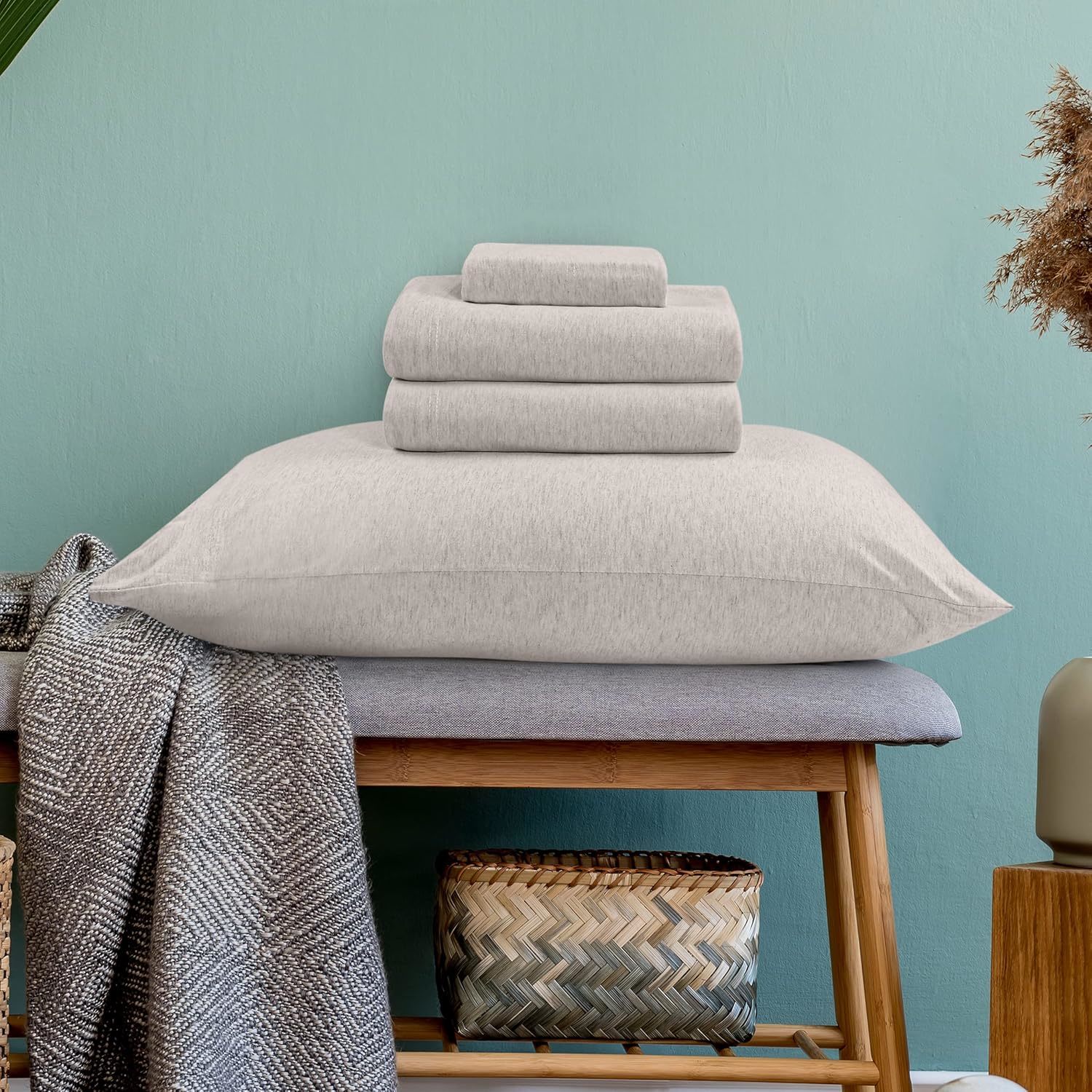 Utopia Jersey Knit 4-Piece Queen Sheet Set Cotton Sheets Soft,, Queen, Oatmeal