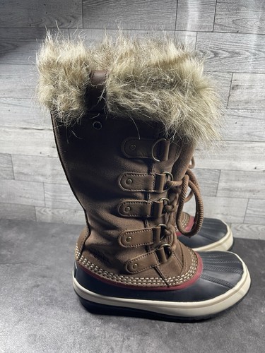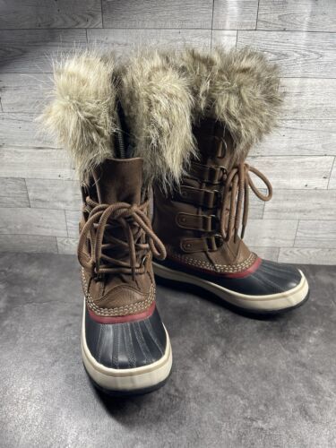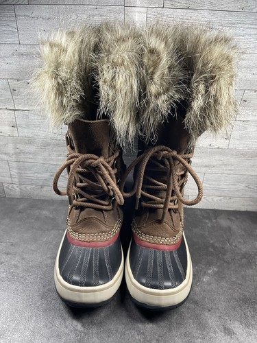 Sorel Boots Women 5.5 Joan Of Arctic Shoes Brown Leather Fur Lace Up Waterproof