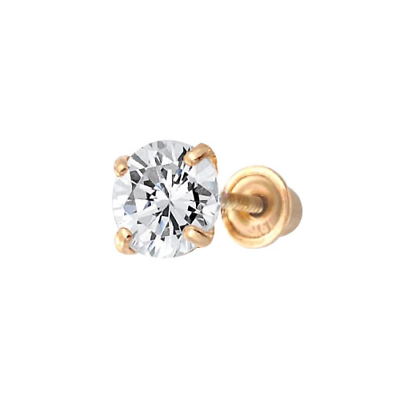 Precious Stars 14k Yellow Gold Round 4mm CZ April Birthstone Screwback Earring
