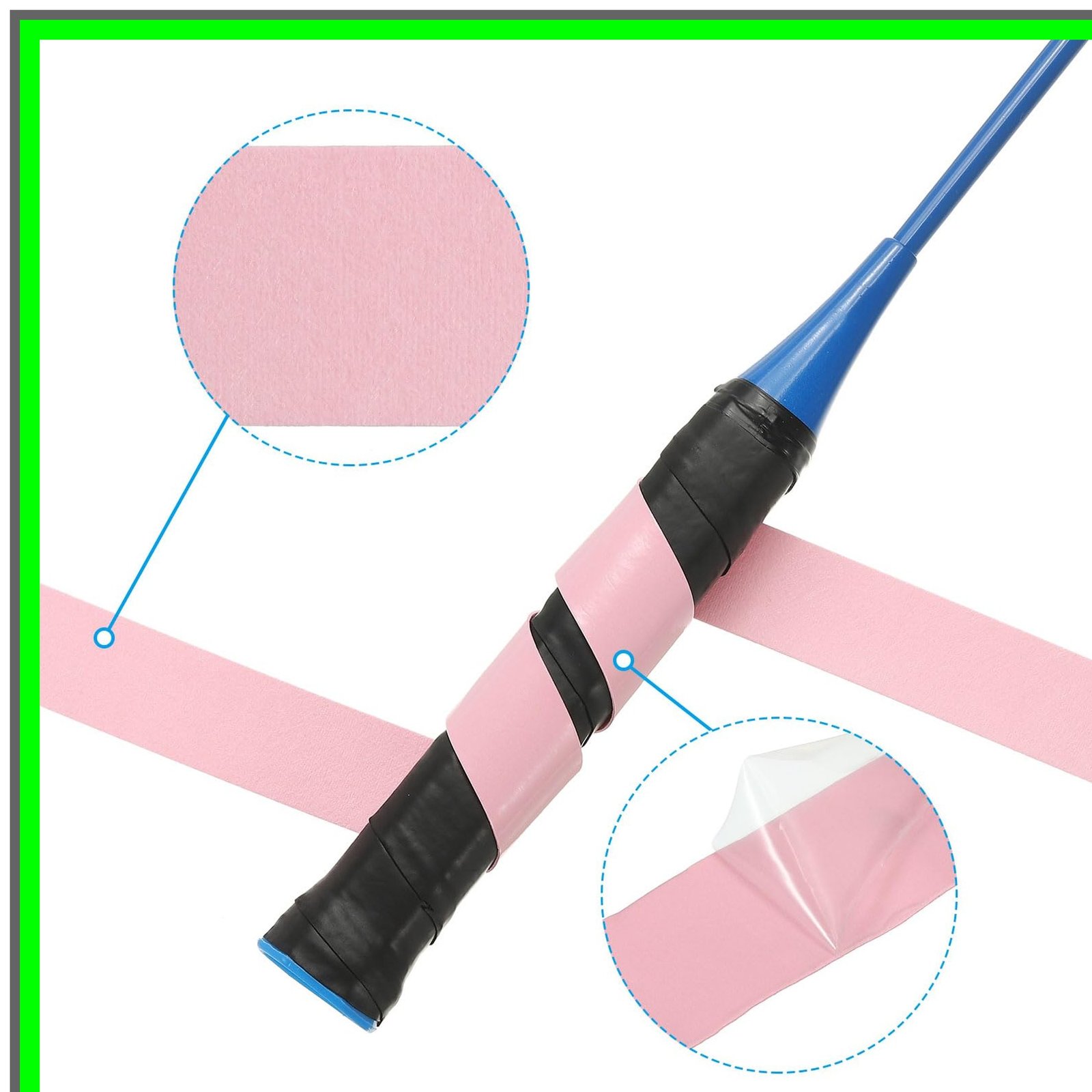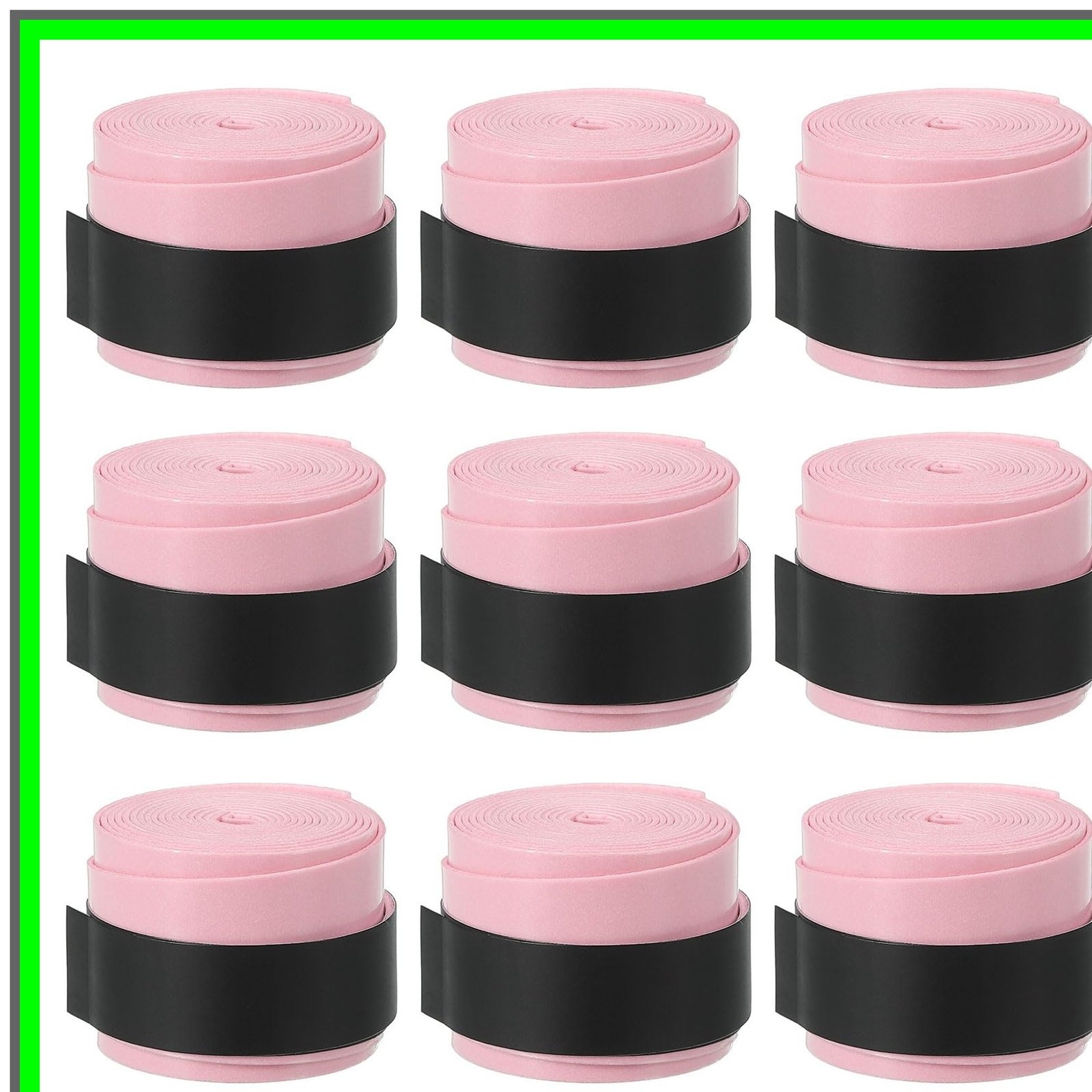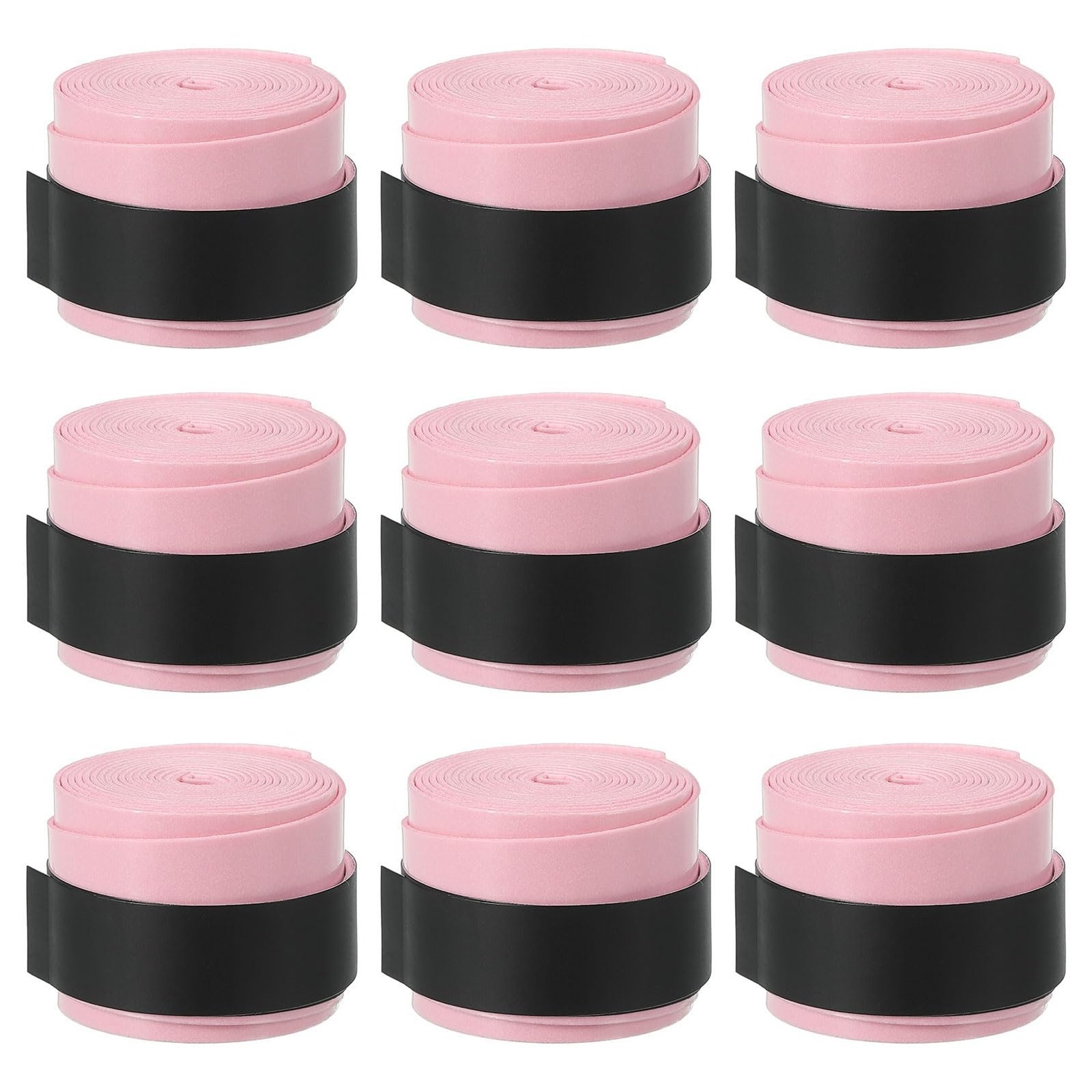 Introducing the Racket Grip Tape, the ultimate solution for enhancing your performance and comfort across a variety of sports equipment. Whether you're playing tennis, squash, badminton, or even using a fishing rod or bicycle handle, this versatile grip tape is designed to provide superior control and comfort. Key Features of Racket Grip Tape:1. **Universal Compatibility**: The Racket Grip Tape is perfect for a wide range of sports equipment, including tennis rackets, squash rackets, badminton rackets, fishing rods, bicycles, canes, and even dumbbells. No matter your sport, this grip tape has you covered.2. **Durable PU Material**: Crafted from high-quality PU material, the Racket Grip Tape offers an ultra-thin feel while ensuring durability. It is designed to withstand the rigors of intense play, making it a reliable choice for athletes.3. **Enhanced Grip and Control**: With its anti-skid and anti-shock properties, the Racket Grip Tape provides an excellent grip, allowing you to maintain control during your game. Say goodbye to slipping and hello to precision!4. **Strong Sweat Absorption**: The Racket Grip Tape is engineered to absorb sweat effectively, keeping your hands dry and ensuring a firm grip even during the most intense matches.5. **Easy Application**: Applying the Racket Grip Tape is a breeze. Simply press one end onto your equipment, wind it upwards while overlapping each layer by about 1/3, and secure it with the included double-sided tape. 6. **Tear-Resistant and Non-Fading**: This grip tape is designed to last, resisting tears and maintaining its vibrant light pink color even after extensive use.7. **Convenient Packing**: Each pack of Racket Grip Tape includes 9 rolls, providing you with ample supply for multiple applications or replacements.8. **Transparent Protective Film**: To ensure the tape remains pristine until use, a transparent protective film is included. Remember to remove it before applying the tape for optimal performance.Upgrade your game with the Racket Grip Tape today! Experience the difference in comfort, control, and performance across all your favorite sports. Whether you're a casual player or a serious athlete, the Racket Grip Tape is an essential addition to your gear. Don't let a poor grip hold you back-choose Racket Grip Tape for a superior sporting experience!