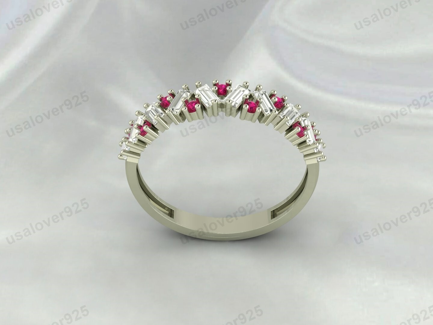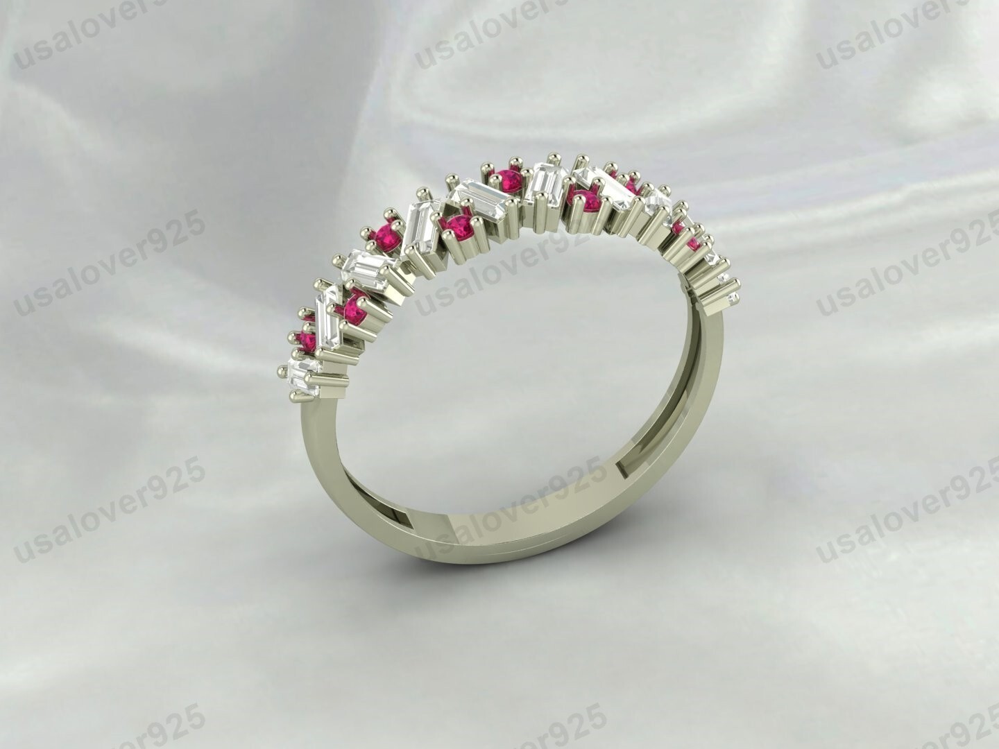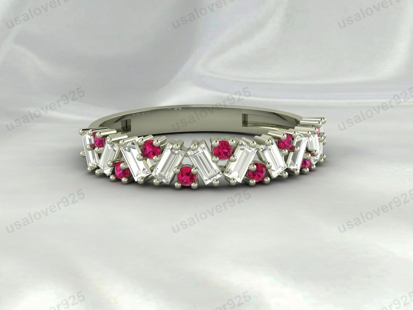 Natural Ruby Stone Women Eternity Band Ring, 925 Sterling Silver Jewelry