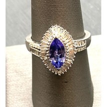 925 STERLING SILVER TANZANITE AND 0.8 CT NATURAL DIAMONDS BALLERINA RING SIZE 8 SKY