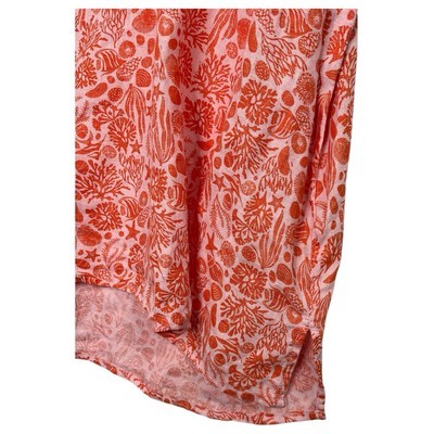 Sigrid Olsen Top Womens 2X Orange Linen Beach Fish Coral Coastal Cottage