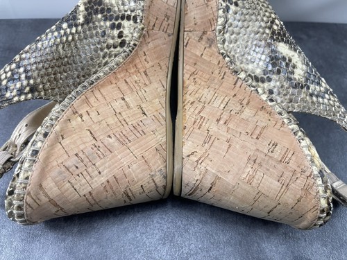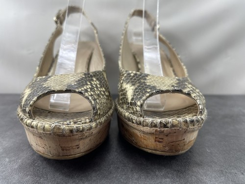 Stuart Weitzman Sandal Women 9N Jean Shoes Brown Snake Cork Heel Slingback Wedge