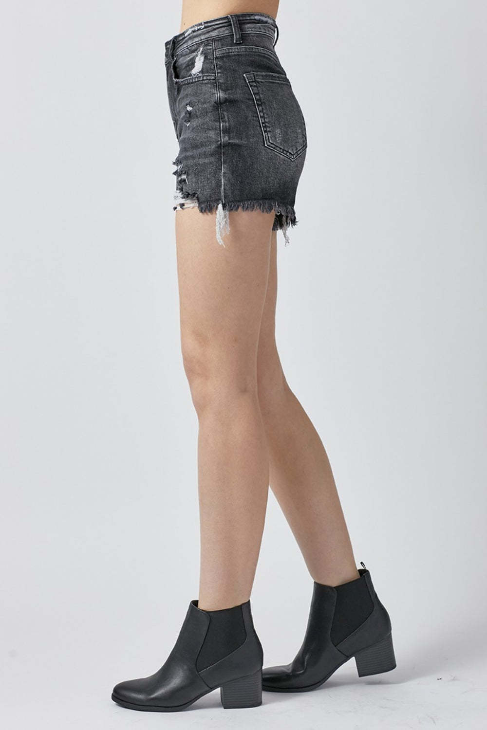 These High Rise Distressed Denim Shorts are a must-have for your summer wardrobe. The high rise design offers a flattering and comfortable fit. The distressed detailing adds a touch of edgy style to the classic denim shorts. Made from a durable and stretchy denim material, these shorts are perfect for everyday wear. Pair them with a casual tee for a laid-back look or dress them up with a blouse for a more polished outfit. Upgrade your summer essentials with these trendy and versatile denim shorts today!