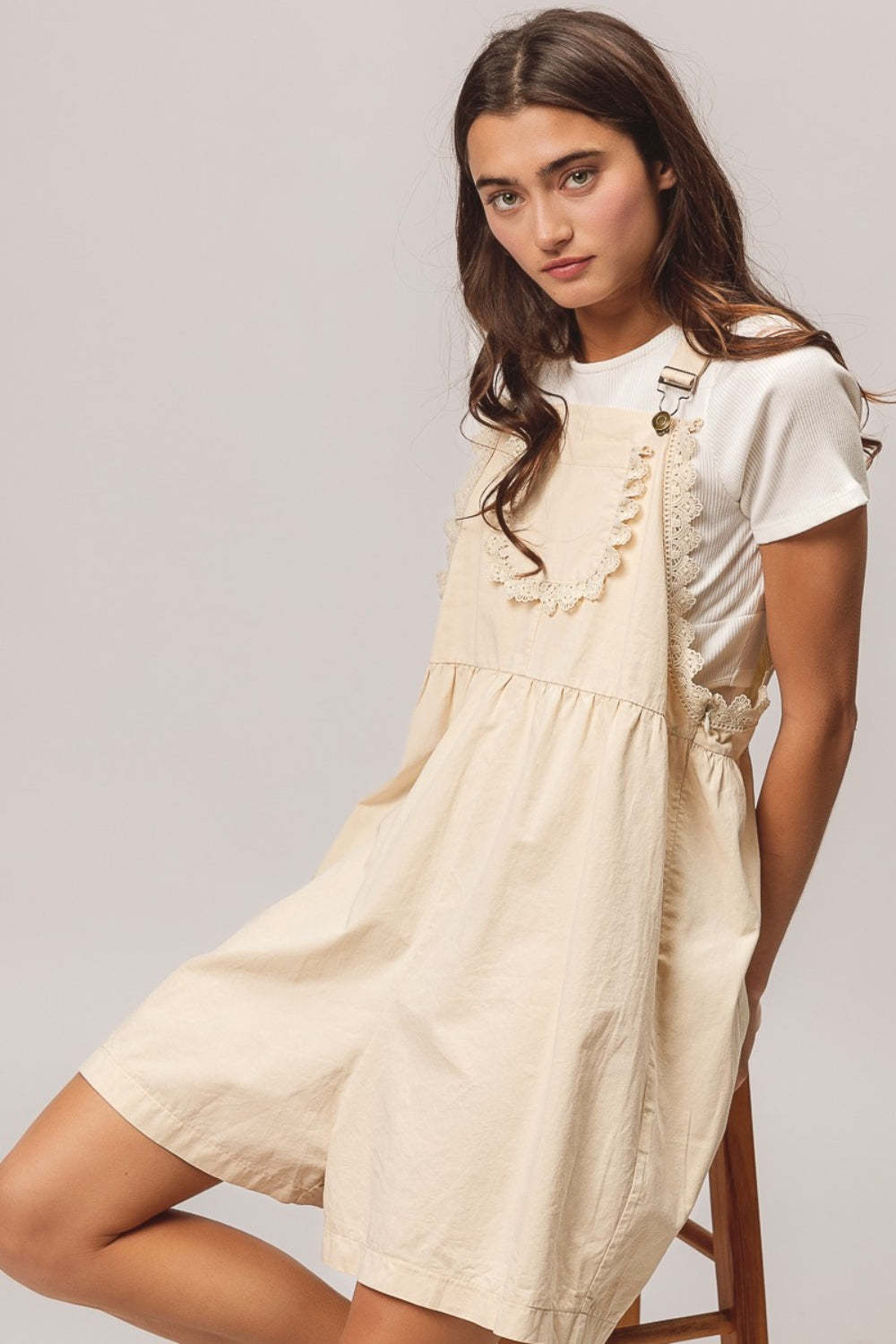 BiBi Back Patch Pocket Lace Trim Rompers