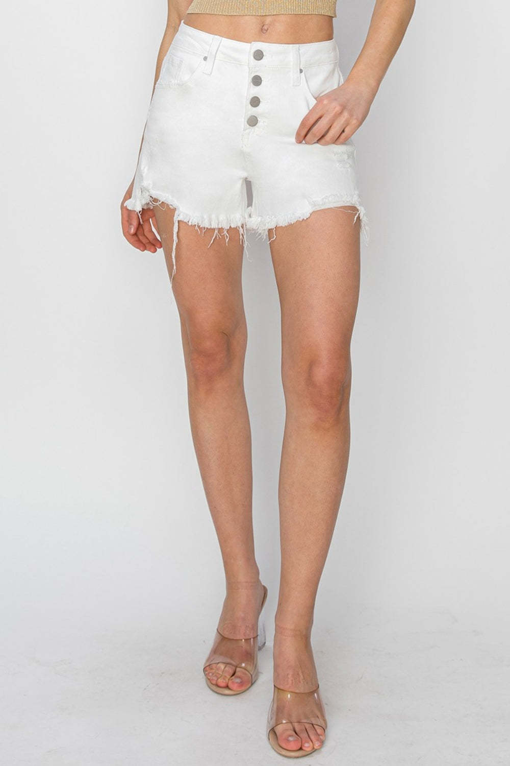 RISEN Button Fly Frayed Hem Denim Shorts and similar items