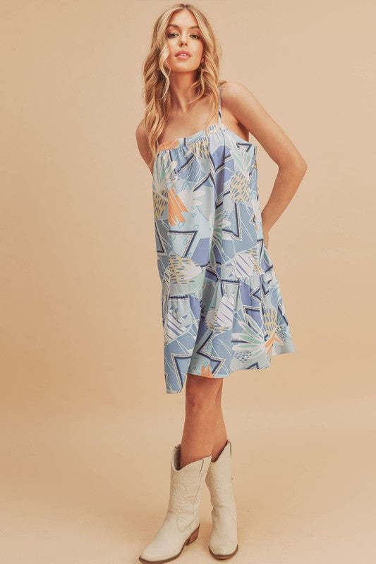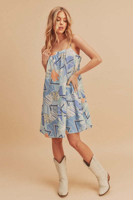Aemi + Co Printed Ruffled Hem Square Neck Mini Cami Dress