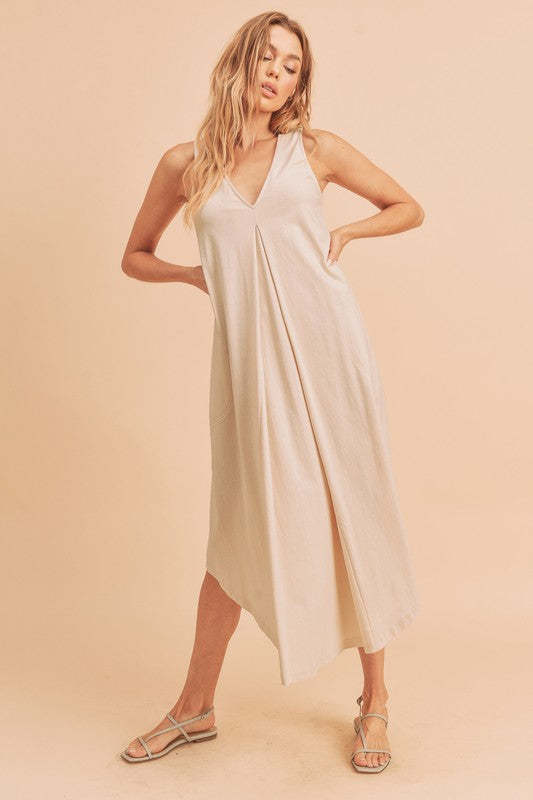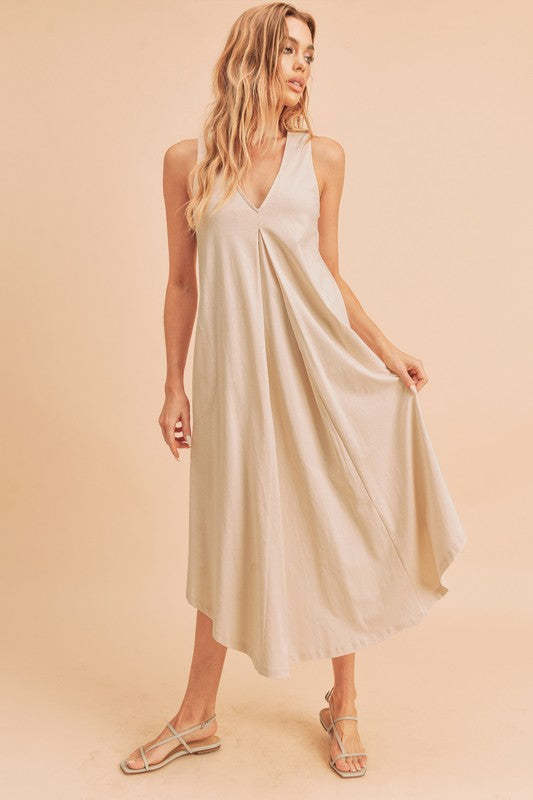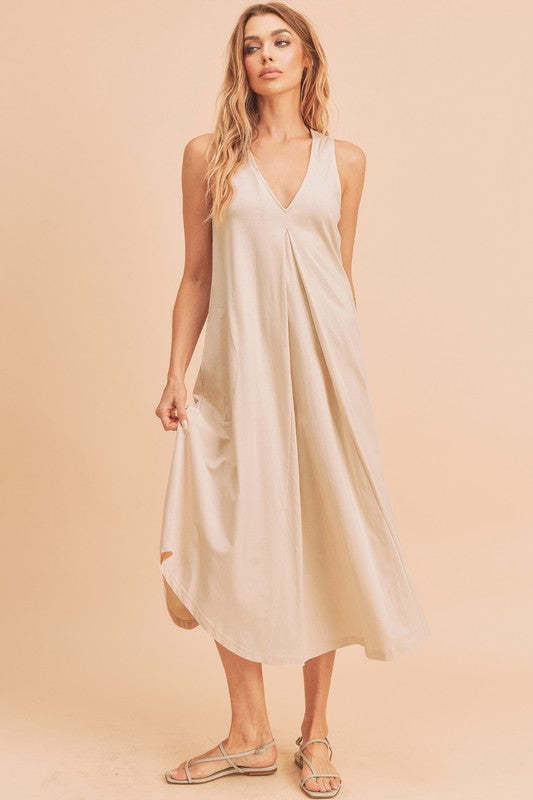 Telisa is designed to a versatile piece, perfect for the beach or for brunch featuring a v-neck silhouette with a front pleat detail, round hem, and pockets.