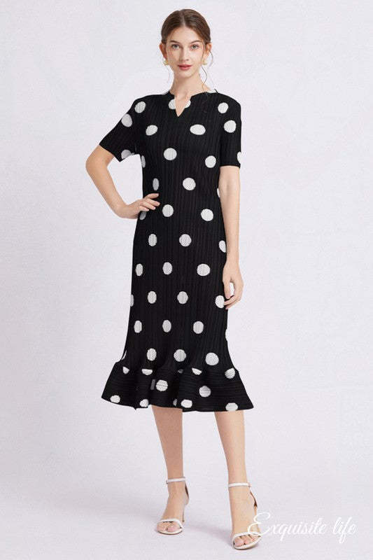 Sexy fashion dress, round neckline cut off the little v-neck look, short sleeves, elasticized waist, and bust