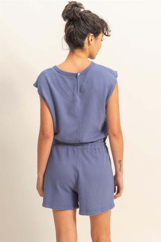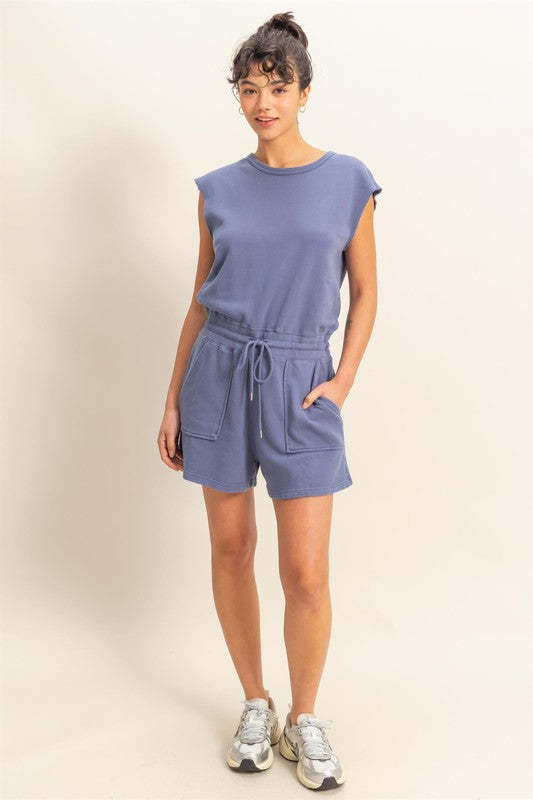 HYFVE Round Neck Cap Sleeve Drawstring Waist Romper