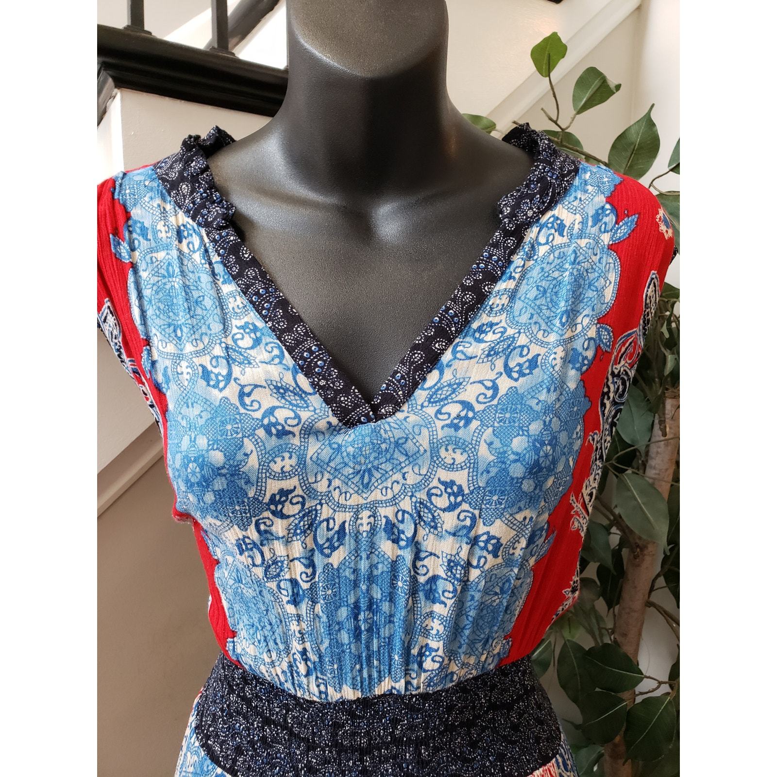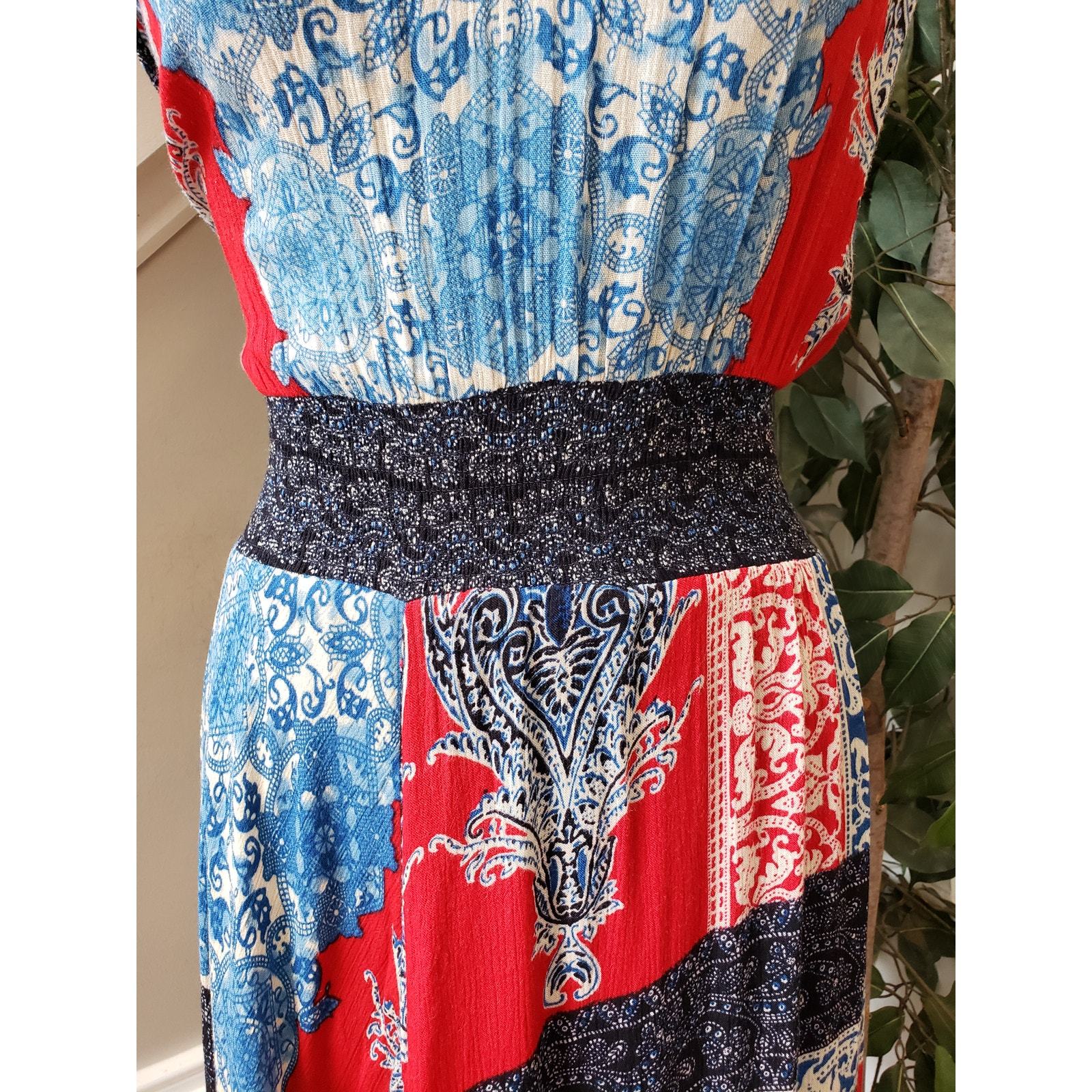 Bila Long Maxi Dress Women's XL Multi Paisley Smocked Waist Sleeveless V-Neck