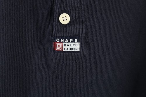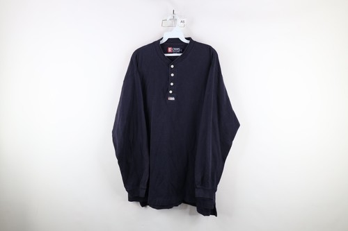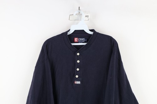 Vintage 90s Chaps Ralph Lauren Mens XL Spell Out Ribbed Knit Henley T-Shirt Blue