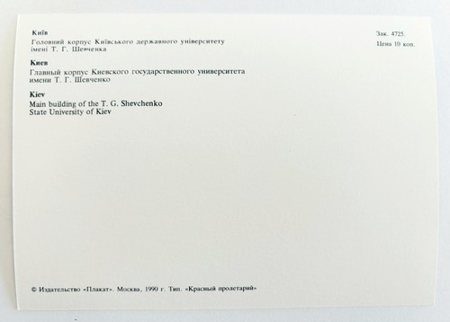 1990 Russian Kiev Postcard Cold War Era Shevchenko State University C82A3