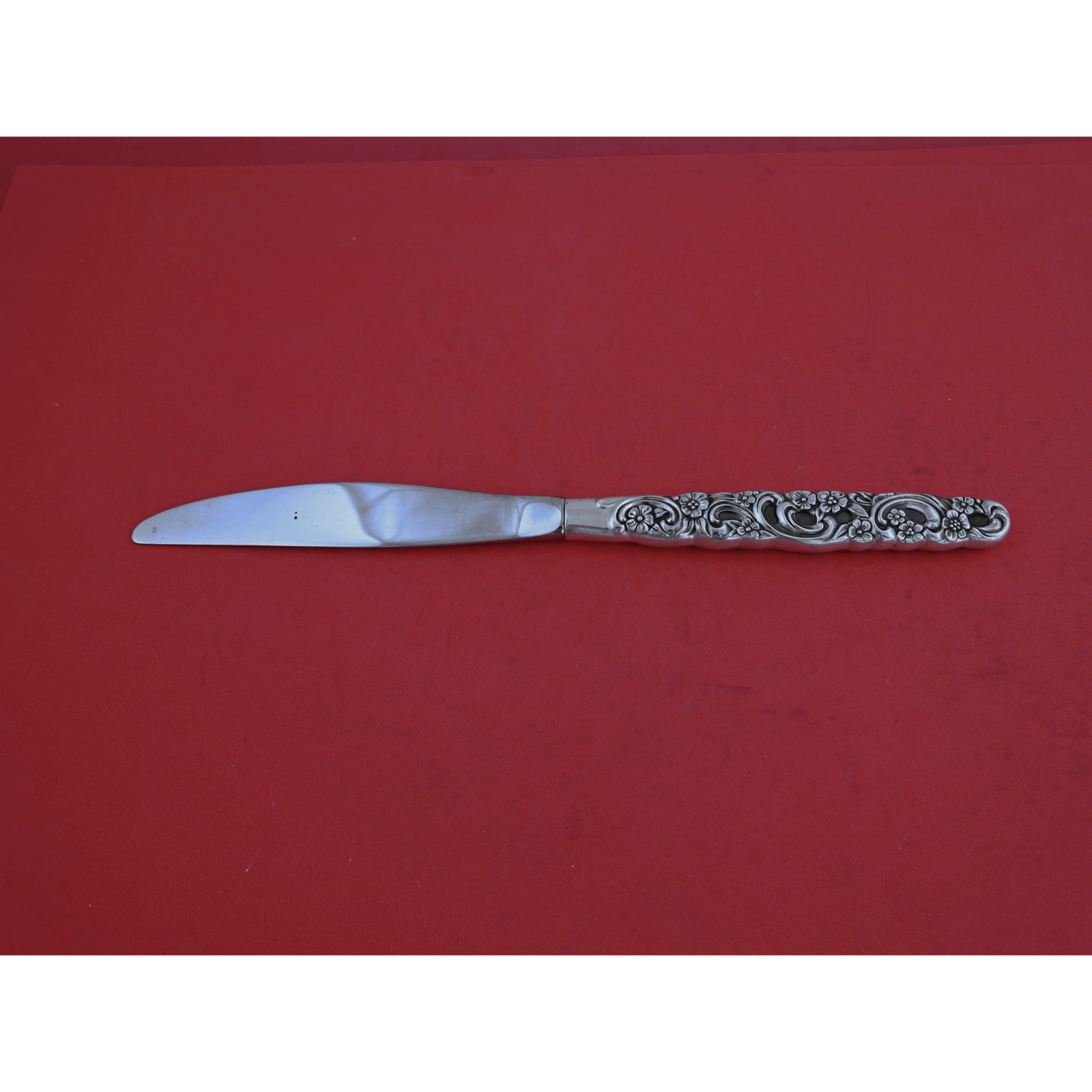 Sterling silver Regular Knife Modern, appears unused 9" in the pattern Rubaiyat By Oneida. It is not monogrammed and is in excellent condition.