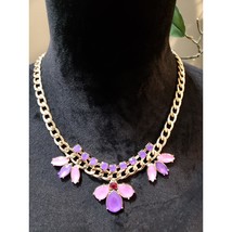Women's Purple/Pink Statement Necklace Lobster Clasp Gold Chain Bold Jewelry