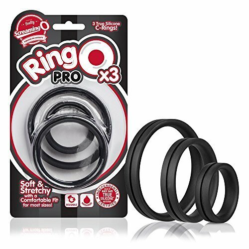 Screaming O RingO Pro X3 3 True Silicone cock rings for 3 unique sensations. 3 silicone cock rings for 3 different sensations. Wide stretchy bands for secure stay put fit. Made of lab tested body safe True Silicone. Reusable and easy to clean. Explore the exciting world of cock rings with the RingO Pro X3 variety pack: three sizes for three different sensations all made of durable and body safe True Silicone. These dependable cock rings are soft smooth and stretchy to assure a perfect fit and feature a wide band with a rounded interior for a more comfortable feel against sensitive skin. Compatible with most lubricants including high quality silicone lubricants. RingO Pro X3 cock rings are reusable and simple to care for: after each use simply wash with soap and warm water and store way from dust or lint so they are ready to go next time you are. Cock rings are popular for their enhancing effects. Some people enjoy wearing a cock ring for a more prominent bulge in their pants while others prefer wearing cock rings in the buff for their aesthetic appeal. Some users even report having longer lasting more satisfying sex while wearing a cock ring. To safely wear your new RingO Pro X3 start with a flaccid or semi erect penis and because these cock rings are stretchy choose a size that is slightly smaller than the diameter of your penis or penis and testicles depending on where you choose to wear the cock ring. As your penis grows erect the cock ring will feel tighter. Using lubricant can help make it easier to put on. Just take care not to accidentally pull on pubic hair! First stretch the ring wide and carefully pull the scrotum and testicles through the ring. Next pull the penis through the ring and adjust it at the base of the penis. Do not bend or push an erect penis through as this can cause injury. With the RingO Pro X3 choose from L XL or XXL sizes and experiment with cock ring enhancement with one easy value priced purchase! Color Black.