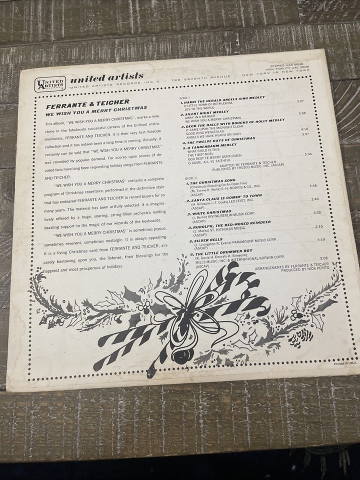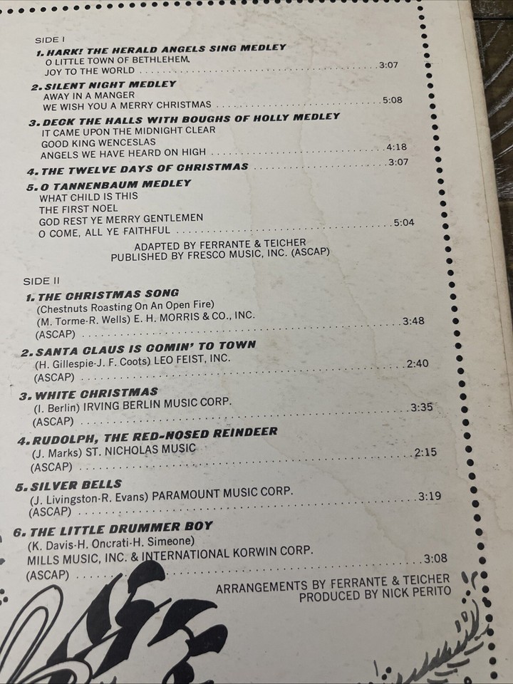 With the Ferrante Teicher duo, this record is a timeless addition to your collection. The album is in great shape and perfect for any occasion. Don't miss out on the chance to own this holiday gem.
