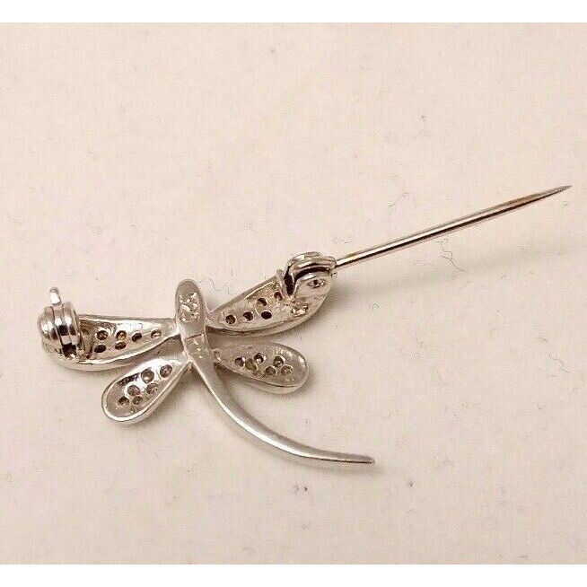 STERLING SILVER YELLOW & CLEAR CZ DRAGONFLY BROOCH PIN SKY