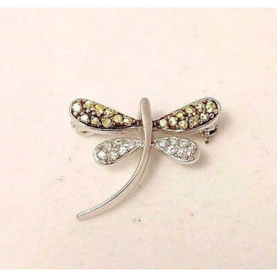 STERLING SILVER YELLOW CLEAR CZ DRAGONFLY BROOCH PIN SKY