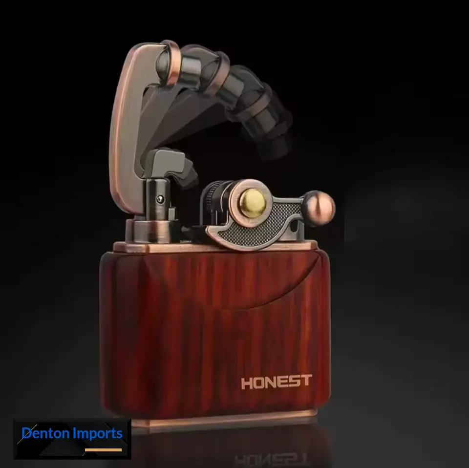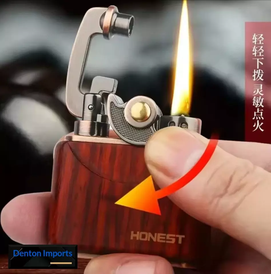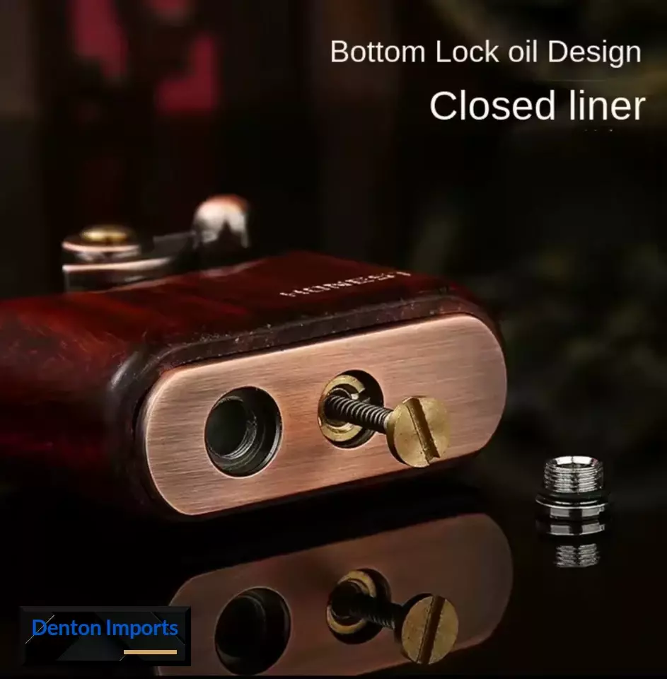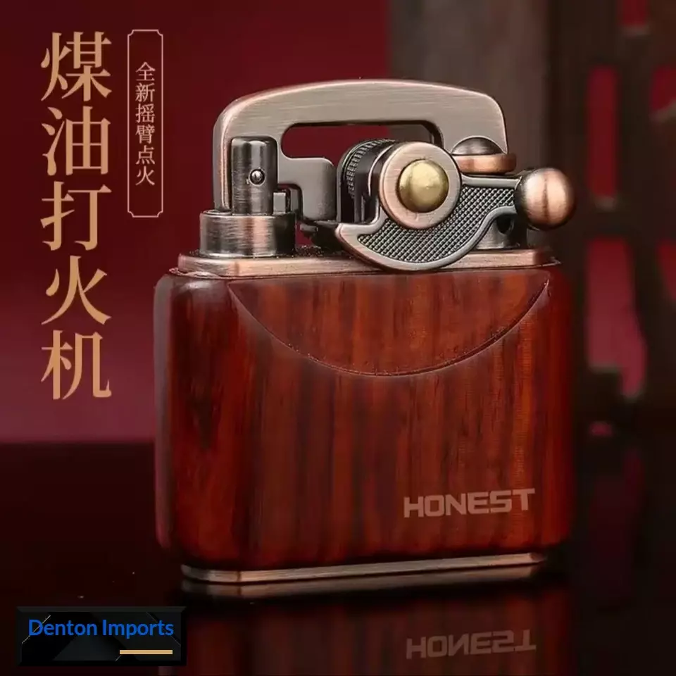 Retro Handmade Wooden Shell Rocker Kerosene Lighter, Metal Movement,