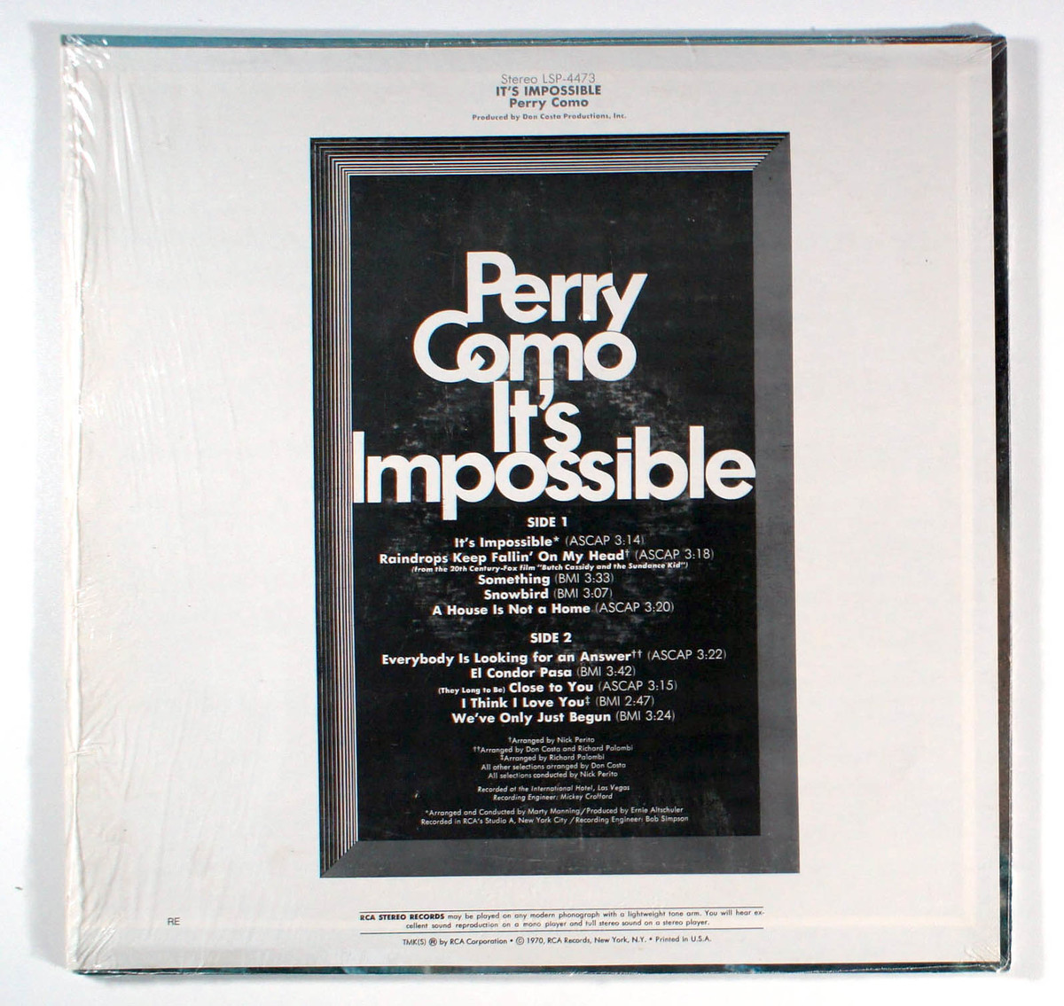 Perry Como - It's Impossible (1970) Vinyl LP Snowbird, We've Only Just Begun