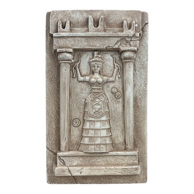 Esta hermosa escultura en relieve de la diosa madre serpiente minoica es una pieza única y llamativa de arte de inspiracion antigua. Hecho a mano de terracota de alta calidad, cuenta con detalles intrincados que evocan el iconico estilo minoico. La escultura representa a la venerada Diosa Madre Serpiente, un símbolo de fertilidad y proteccion en la antigua cultura minoica. Ideal para coleccionistas o como una pieza de declaracion para su hogar, esta pequeña escultura de pared aportara un toque de historia y arte a cualquier espacio.