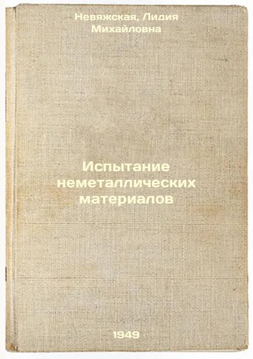 Short description: In Russian. Nevyazhskaya, Lidia Mikhailovna. Testing of non-metallic materials. Moscow Sverdlovsk: Ural-Sib branch of Mashgiz (Sverdlovsk: 5th type. Glavpolygraphizdat, 1949. Ispytanie nemetallicheskikh materialov. In Russian /Testing of non-metallic materials . The image is provided for reference only. It may reflect condition of one of the available copies or only help in identifying the edition. Please feel free to contact us for a detailed description of the copies available. SKU5848588