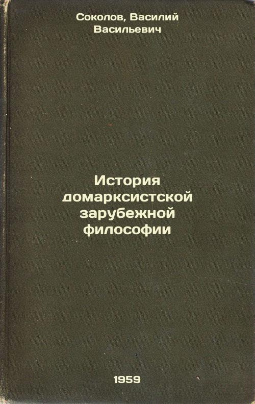 Short description: In Russian. Sokolov, Vasily Vasilievich. History of Pre-Marxist Foreign Philosophy. Moscow: Publishing House of Moscow, 1959. Istoriya domarksistskoy zarubezhnoy filosofii. In Russian /History of Pre-Marxist Foreign Philosophy . The image is provided for reference only. It may reflect condition of one of the available copies or only help in identifying the edition. Please feel free to contact us for a detailed description of the copies available. SKU8442078