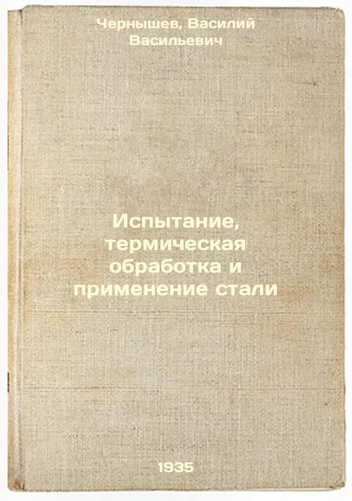 Short description: In Russian. Chernyshev, Vasily Vasilievich. Testing, Thermal Treatment and Application of Steel. Kharkiv. Kyiv: State Scientific and Engineering Publishing House of Ukraine, 1935. Ispytanie, termicheskaya obrabotka i primenenie stali. In Russian /Testing, heat treatment and application of steel . The image is provided for reference only. It may reflect condition of one of the available copies or only help in identifying the edition. Please feel free to contact us for a detailed description of the copies available. SKU5315597