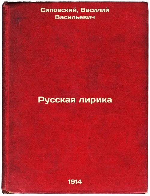 Short description: In Russian. Sipovsky, Vasily Vasilievich. Russian Lyrics. Petrograd: Types by V. Anderson and G. Loiqiansky, 1914. Please feel free to contact us for a detailed description of the copies available. SKU4173909
