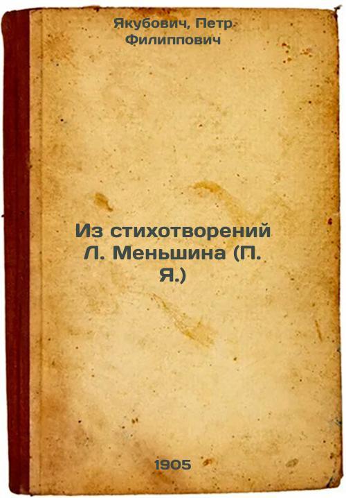Short description: In Russian. Yakubovich, Petr Filippovich. From the Poems of LMenshin (PYa.). Rostov-On-Don: The Don Speech by N. E. Paramonov, 1905. Please feel free to contact us for a detailed description of the copies available. SKU8633403