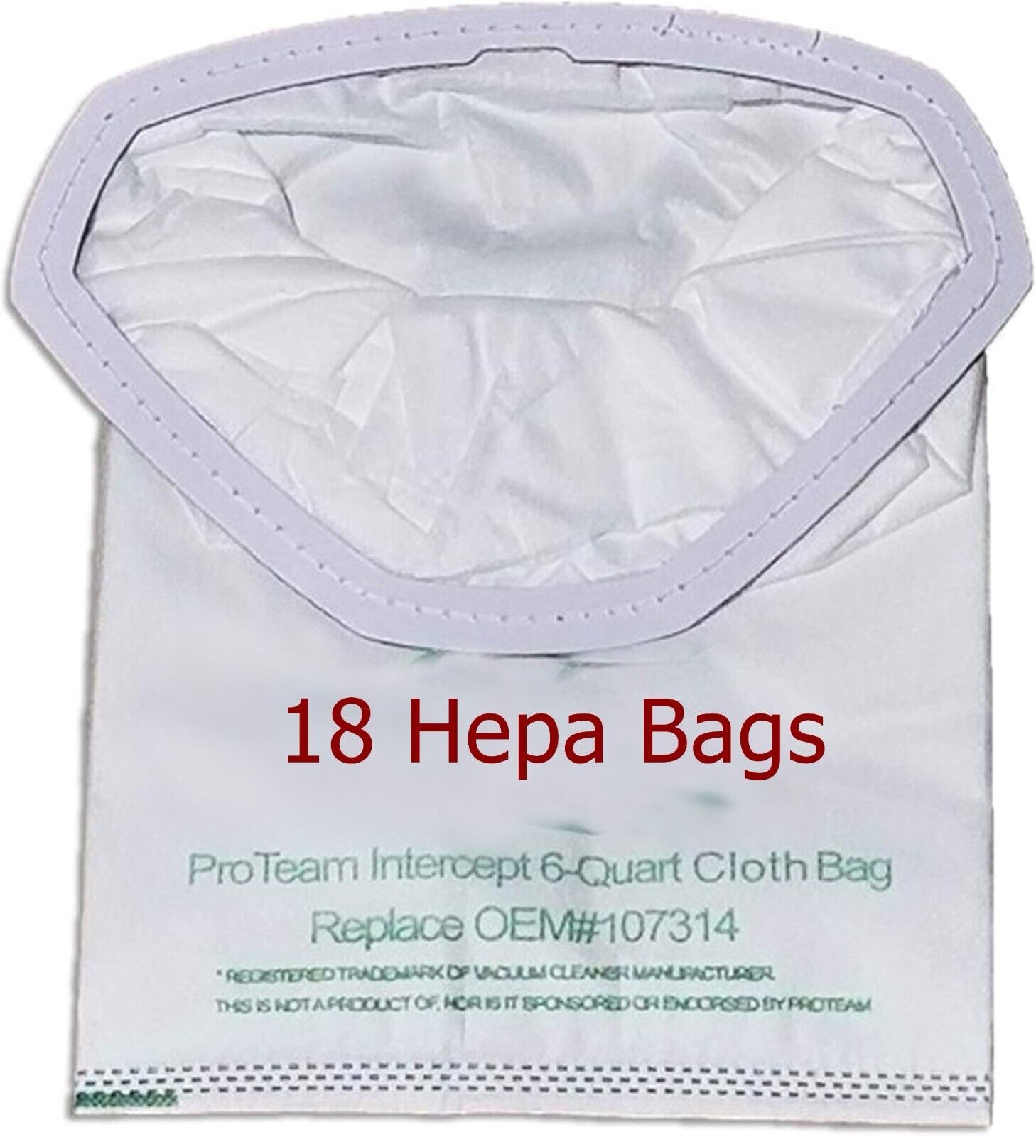 18 Replacement 107314 HEPA Bags. Compatible with ProTeam Intercept 6 QT Backpack Vacuum Cleaner. Fits Super Coach Pro 6 GoFree Flex Pro ProVac FS 6 6 quart