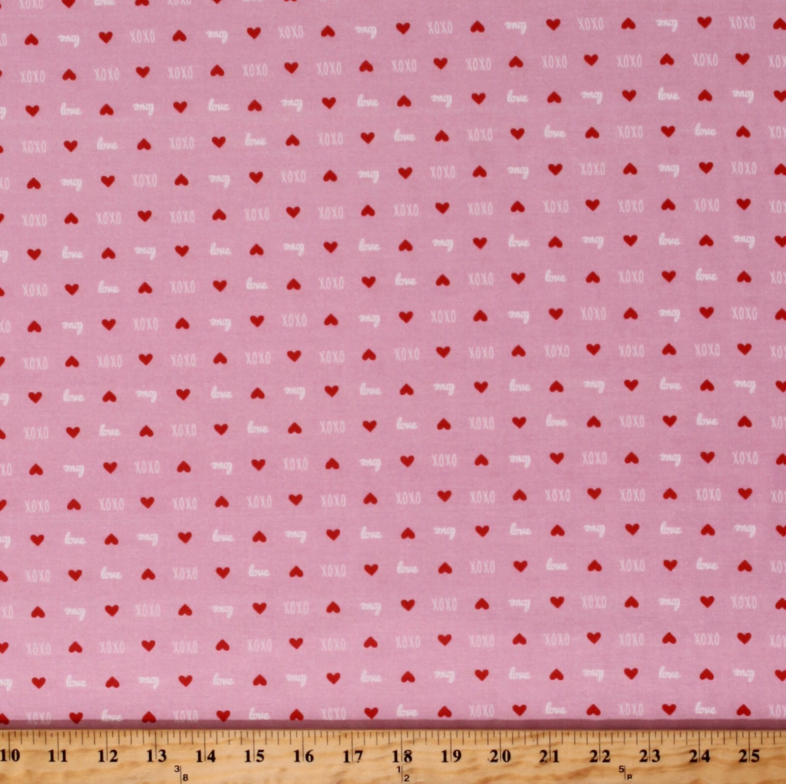 Cotton Love Hugs and Kisses XOXO Valentines Hearts Pink Cotton Fabric Print by the Yard (21190703) D379.43