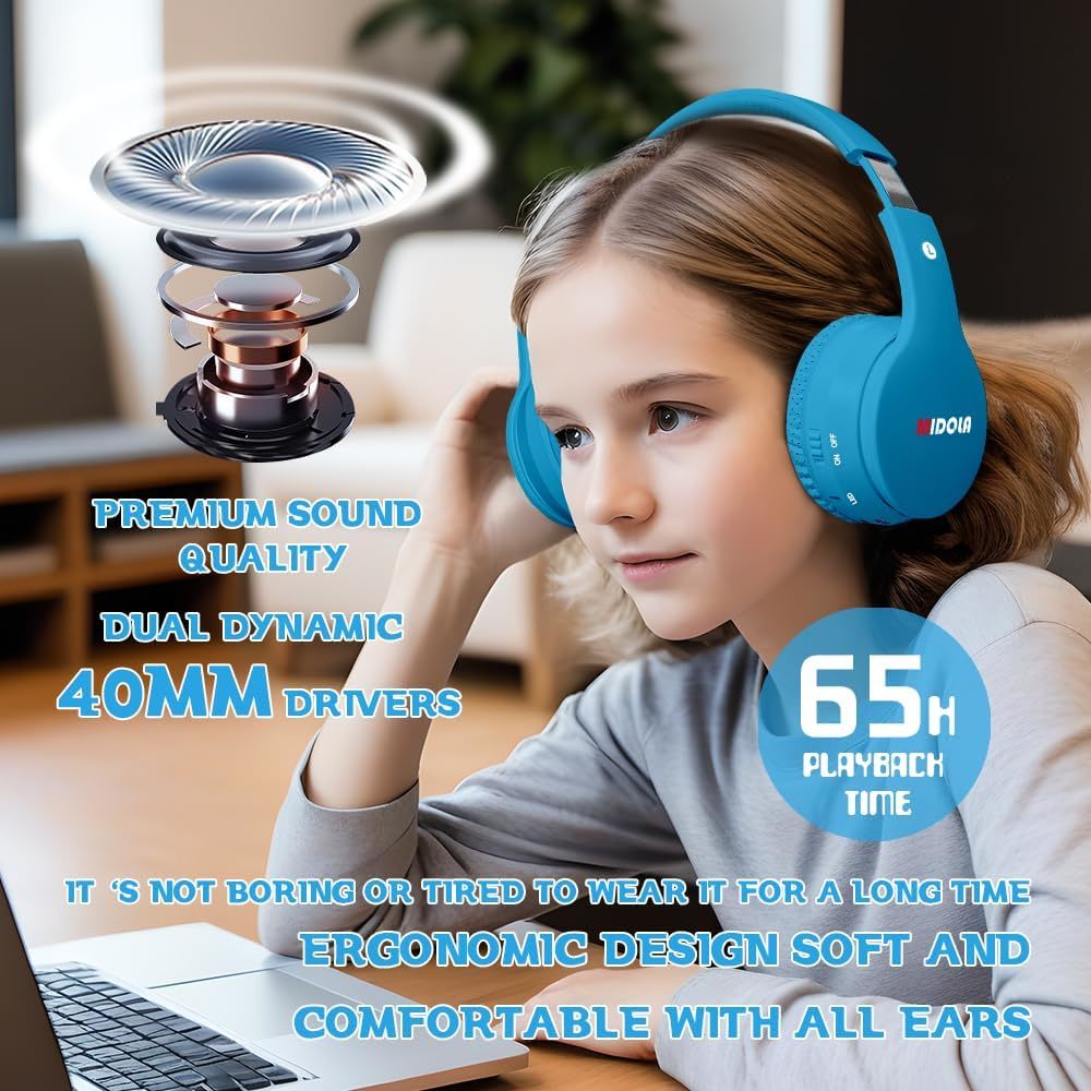 Midola Kids Headphones Bluetooth 5.3 Wireless 60H Play Time Volume Limit