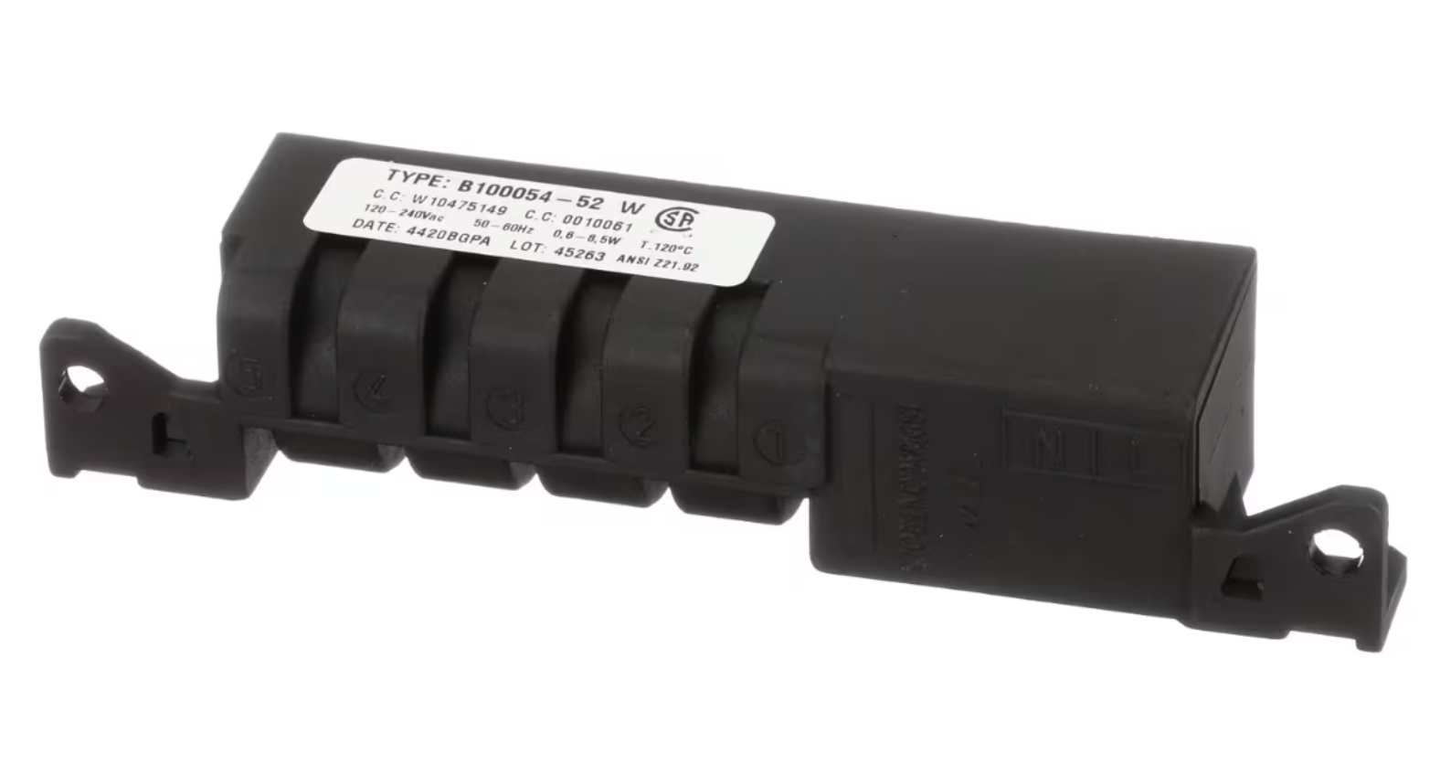 The Whirlpool B100054-52 / W10475149 Ignition Module is a high-quality OEM component designed to regulate the ignition process for gas ranges and cooktops. Operating on 120?240V at 50/60Hz, this control unit ensures reliable and safe ignition for a wide range of Whirlpool and KitchenAid gas appliances.